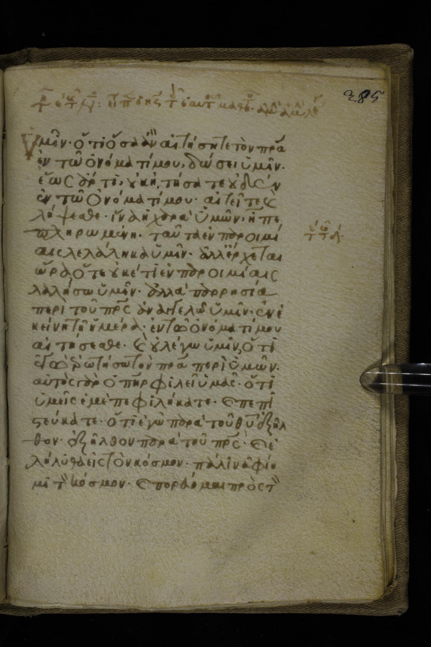 Fourteenth century minuscule of the Gospels on parchment; 302 leaves, 1 column, 19-21 lines per column. Images were taken at the National Library of Greece in Athens.