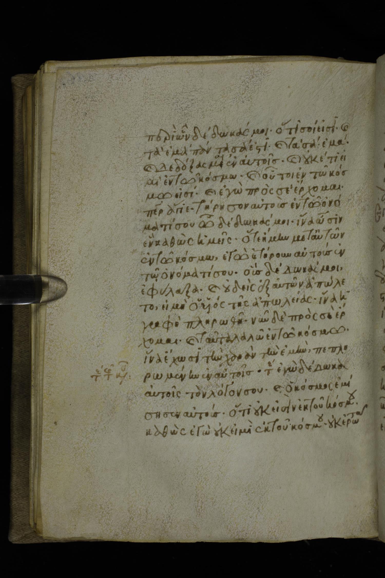 Ὅτε ἤμην μετ´ αὐτῶν ἐγὼ ἐτήρουν αὐτοὺς ἐν τῷ ὀνόματί σου ᾧ δέδωκάς μοι, καὶ ἐφύλαξα, καὶ οὐδεὶς ἐξ αὐτῶν ἀπώλετο εἰ μὴ ὁ υἱὸς τῆς ἀπωλείας, ἵνα ἡ γραφὴ πληρωθῇ.