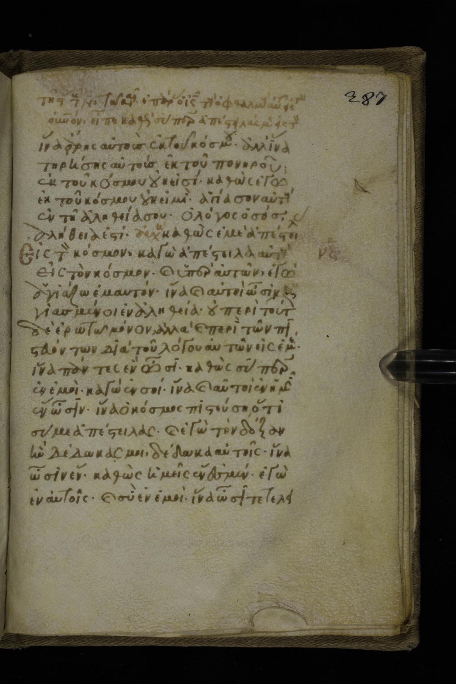 Fourteenth century minuscule of the Gospels on parchment; 302 leaves, 1 column, 19-21 lines per column. Images were taken at the National Library of Greece in Athens.