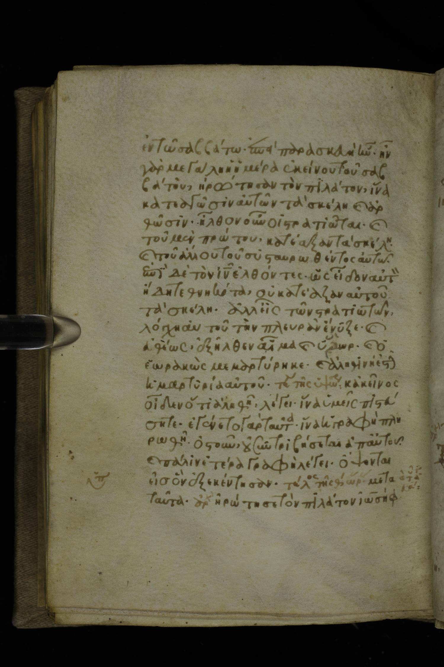 Fourteenth century minuscule of the Gospels on parchment; 302 leaves, 1 column, 19-21 lines per column. Images were taken at the National Library of Greece in Athens.