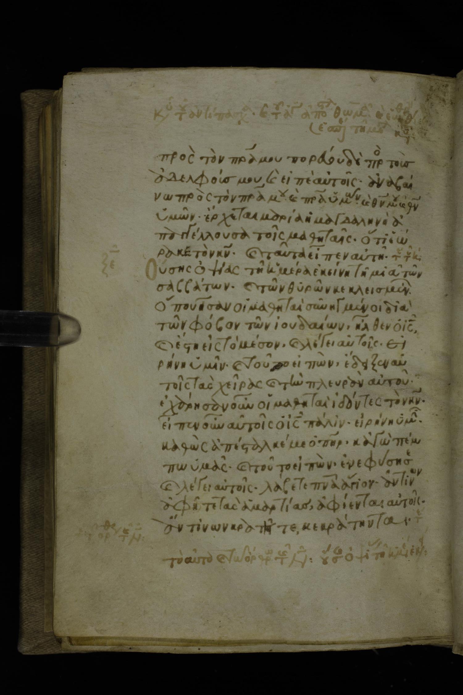 Fourteenth century minuscule of the Gospels on parchment; 302 leaves, 1 column, 19-21 lines per column. Images were taken at the National Library of Greece in Athens.