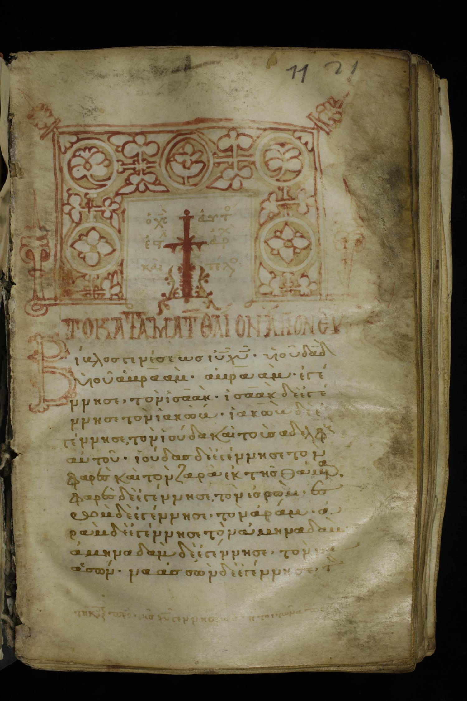 Thirteenth century minuscule of the Gospels on parchment; 298 leaves, 1 column, 22-24 lines per column. Images were taken at the National Library of Greece in Athens.