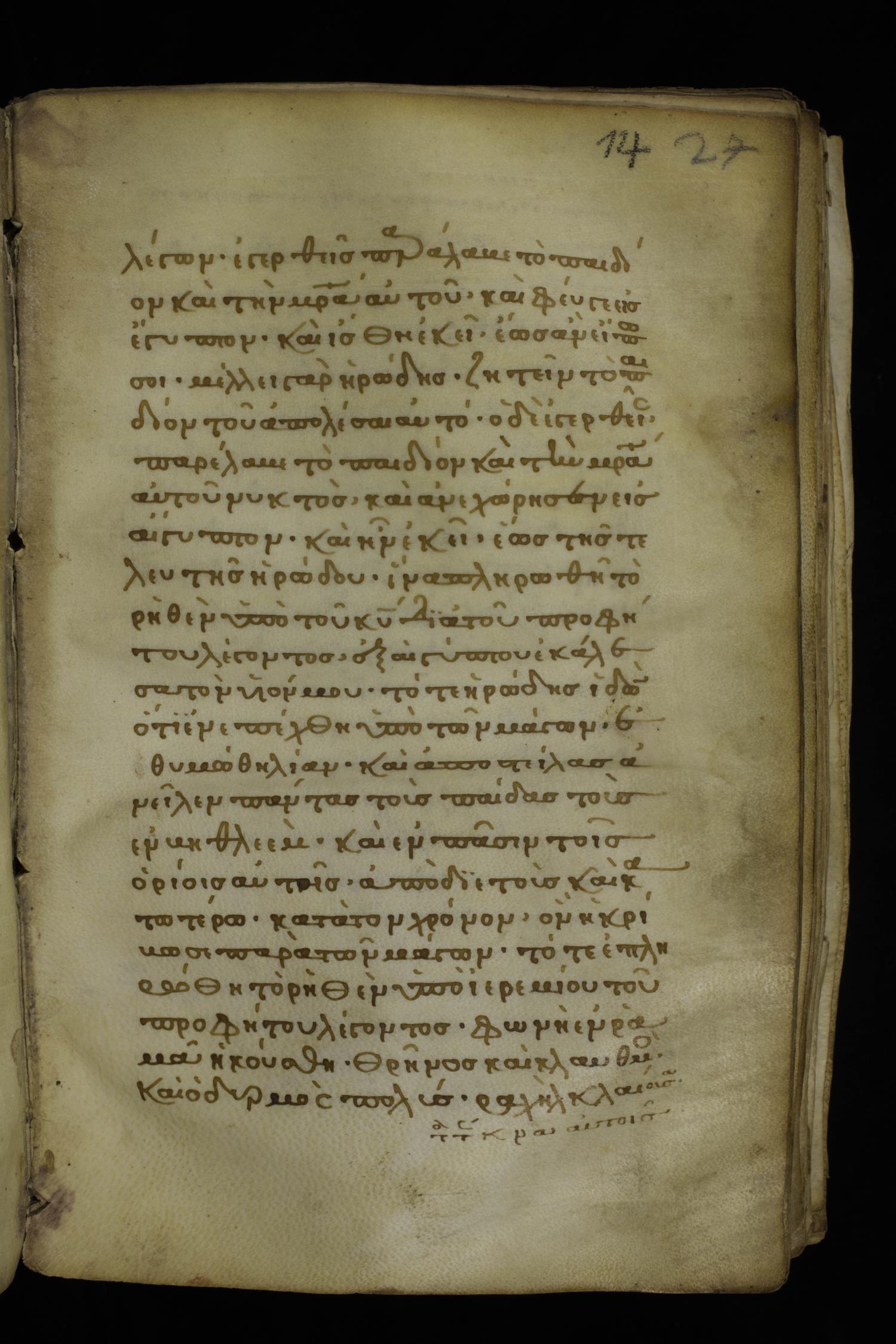Thirteenth century minuscule of the Gospels on parchment; 298 leaves, 1 column, 22-24 lines per column. Images were taken at the National Library of Greece in Athens.