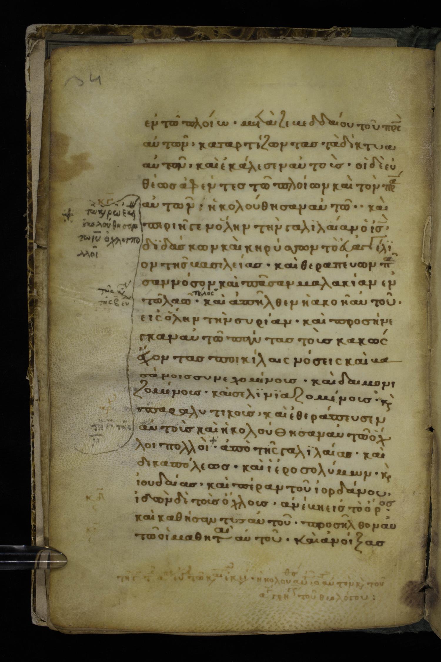Thirteenth century minuscule of the Gospels on parchment; 298 leaves, 1 column, 22-24 lines per column. Images were taken at the National Library of Greece in Athens.
