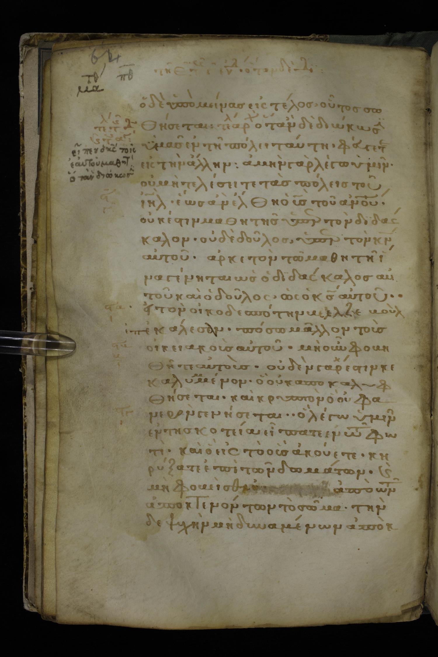 Thirteenth century minuscule of the Gospels on parchment; 298 leaves, 1 column, 22-24 lines per column. Images were taken at the National Library of Greece in Athens.