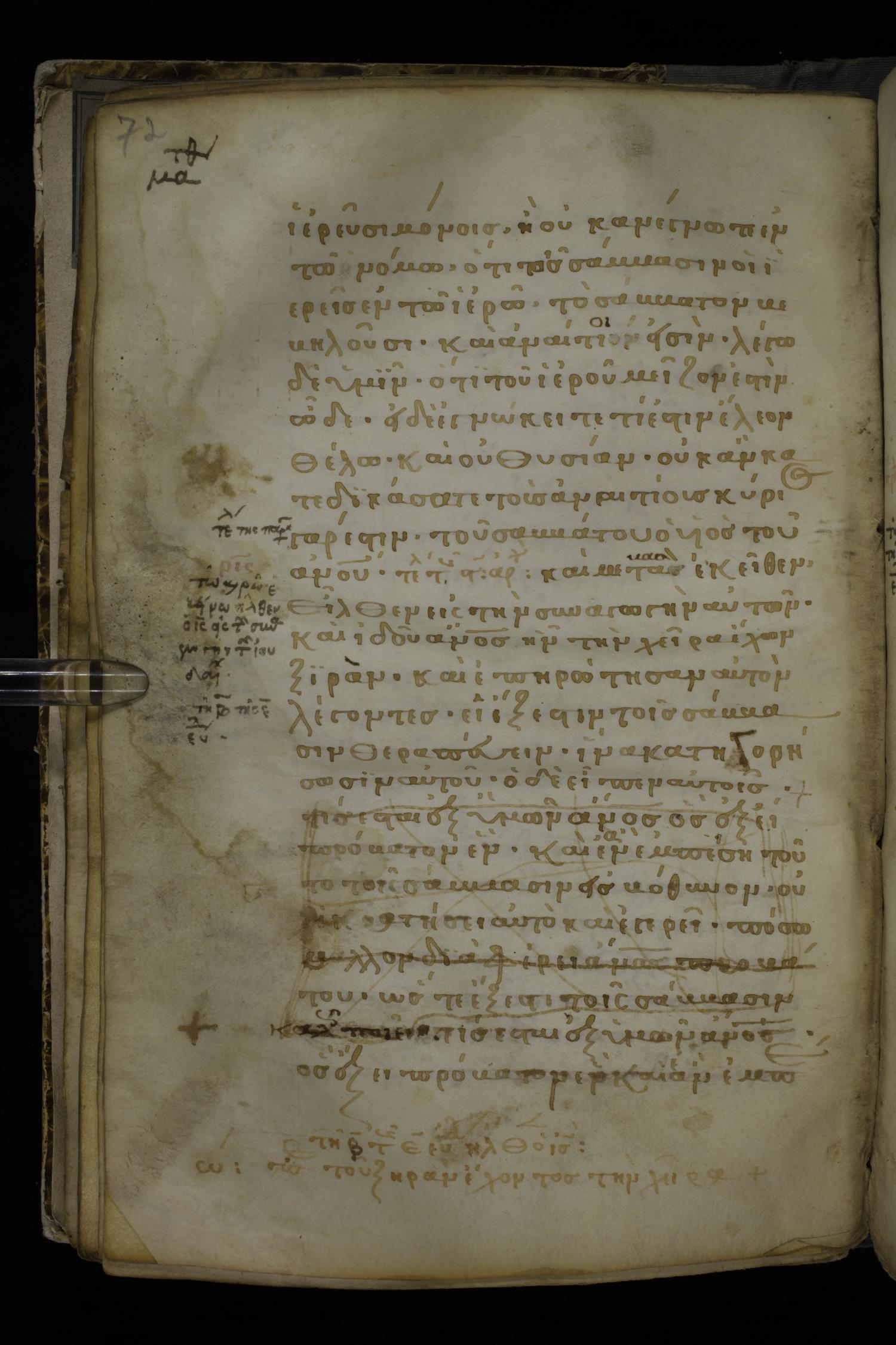 Thirteenth century minuscule of the Gospels on parchment; 298 leaves, 1 column, 22-24 lines per column. Images were taken at the National Library of Greece in Athens.