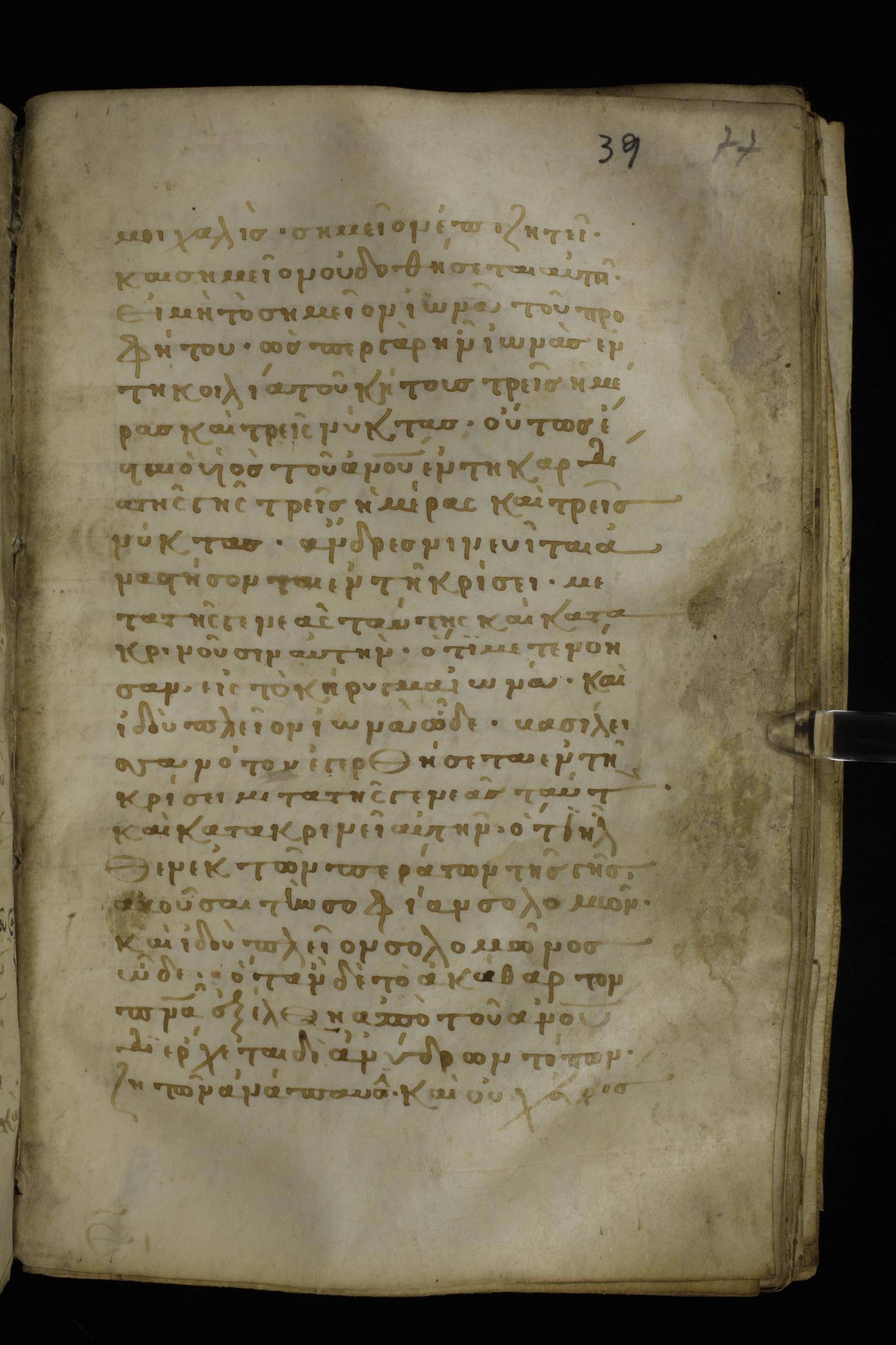 Thirteenth century minuscule of the Gospels on parchment; 298 leaves, 1 column, 22-24 lines per column. Images were taken at the National Library of Greece in Athens.