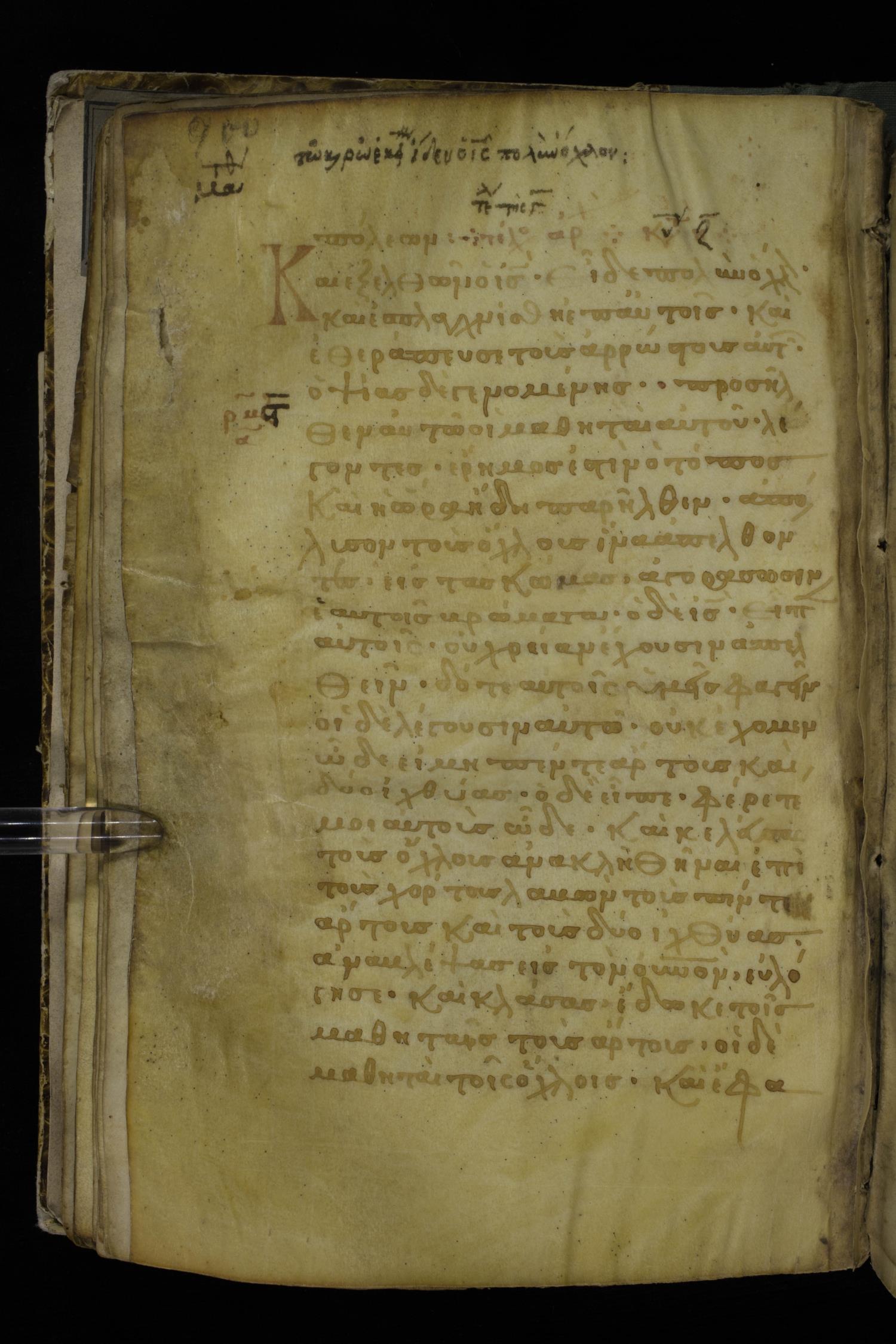 Thirteenth century minuscule of the Gospels on parchment; 298 leaves, 1 column, 22-24 lines per column. Images were taken at the National Library of Greece in Athens.