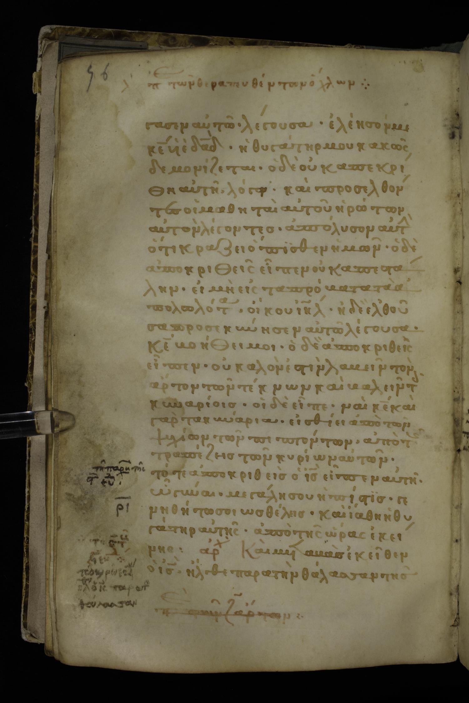 Thirteenth century minuscule of the Gospels on parchment; 298 leaves, 1 column, 22-24 lines per column. Images were taken at the National Library of Greece in Athens.