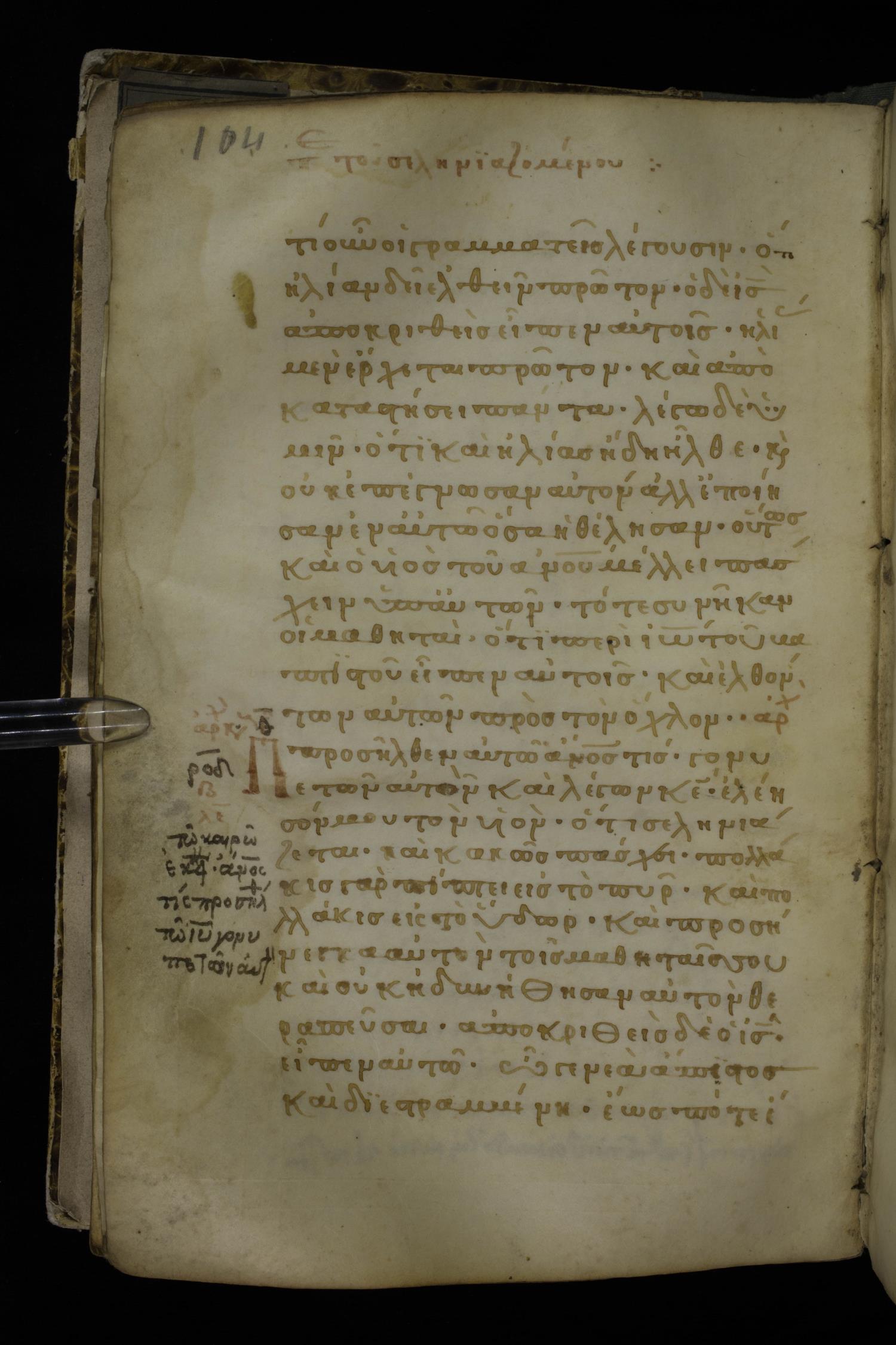 Thirteenth century minuscule of the Gospels on parchment; 298 leaves, 1 column, 22-24 lines per column. Images were taken at the National Library of Greece in Athens.