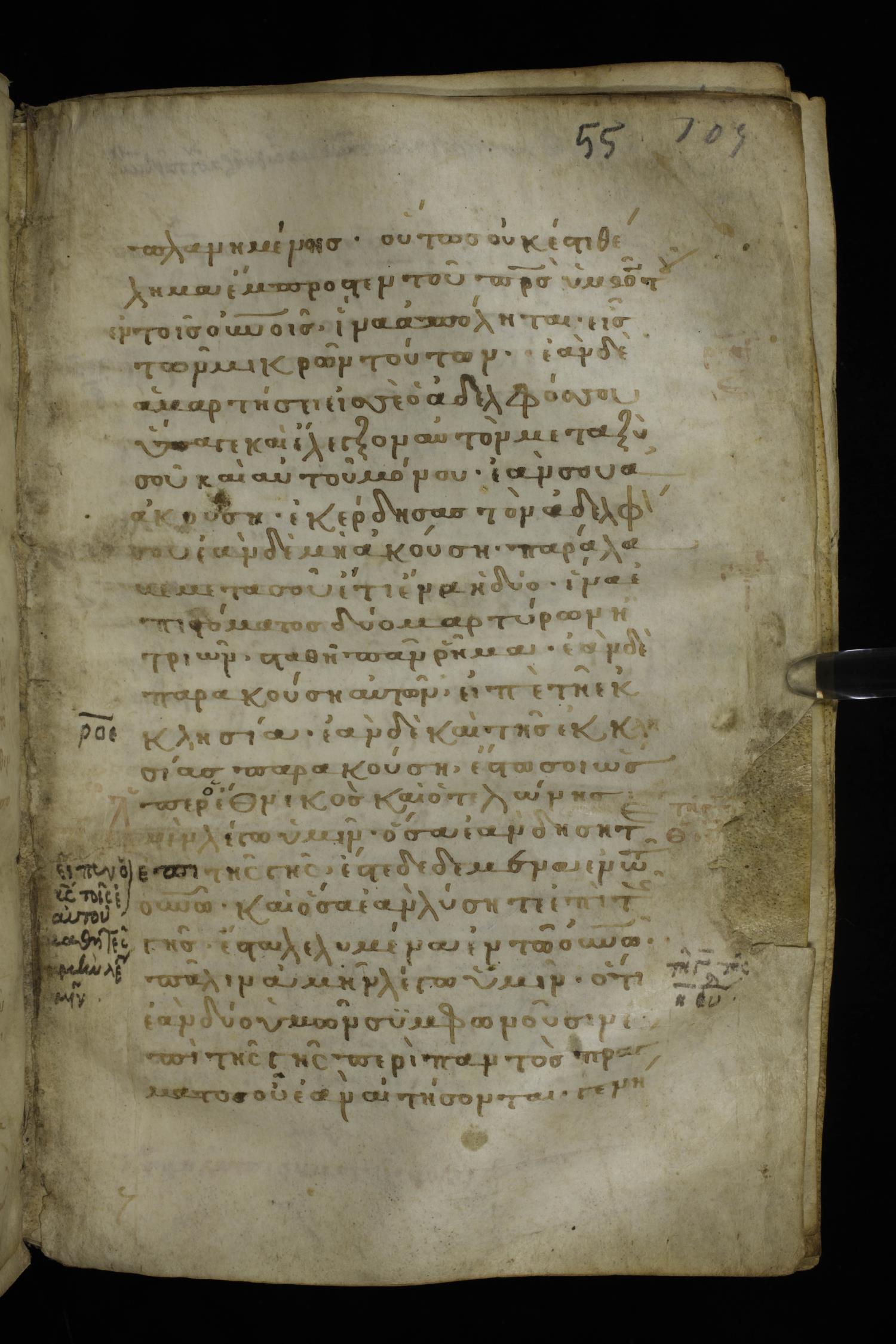 Thirteenth century minuscule of the Gospels on parchment; 298 leaves, 1 column, 22-24 lines per column. Images were taken at the National Library of Greece in Athens.