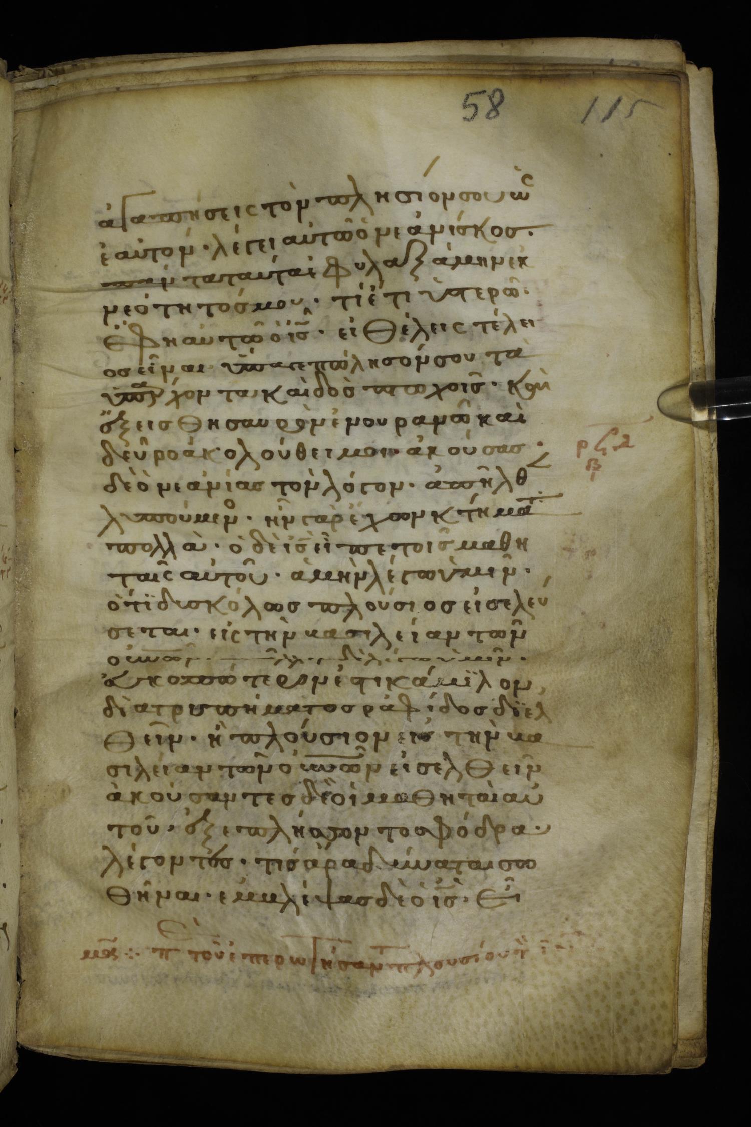 Thirteenth century minuscule of the Gospels on parchment; 298 leaves, 1 column, 22-24 lines per column. Images were taken at the National Library of Greece in Athens.
