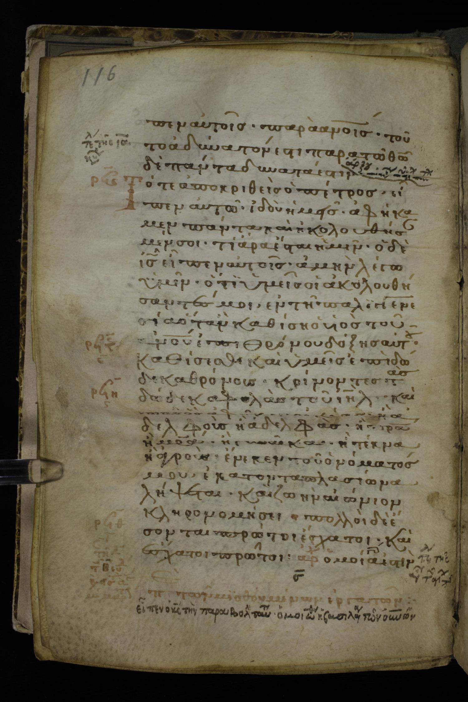 Thirteenth century minuscule of the Gospels on parchment; 298 leaves, 1 column, 22-24 lines per column. Images were taken at the National Library of Greece in Athens.