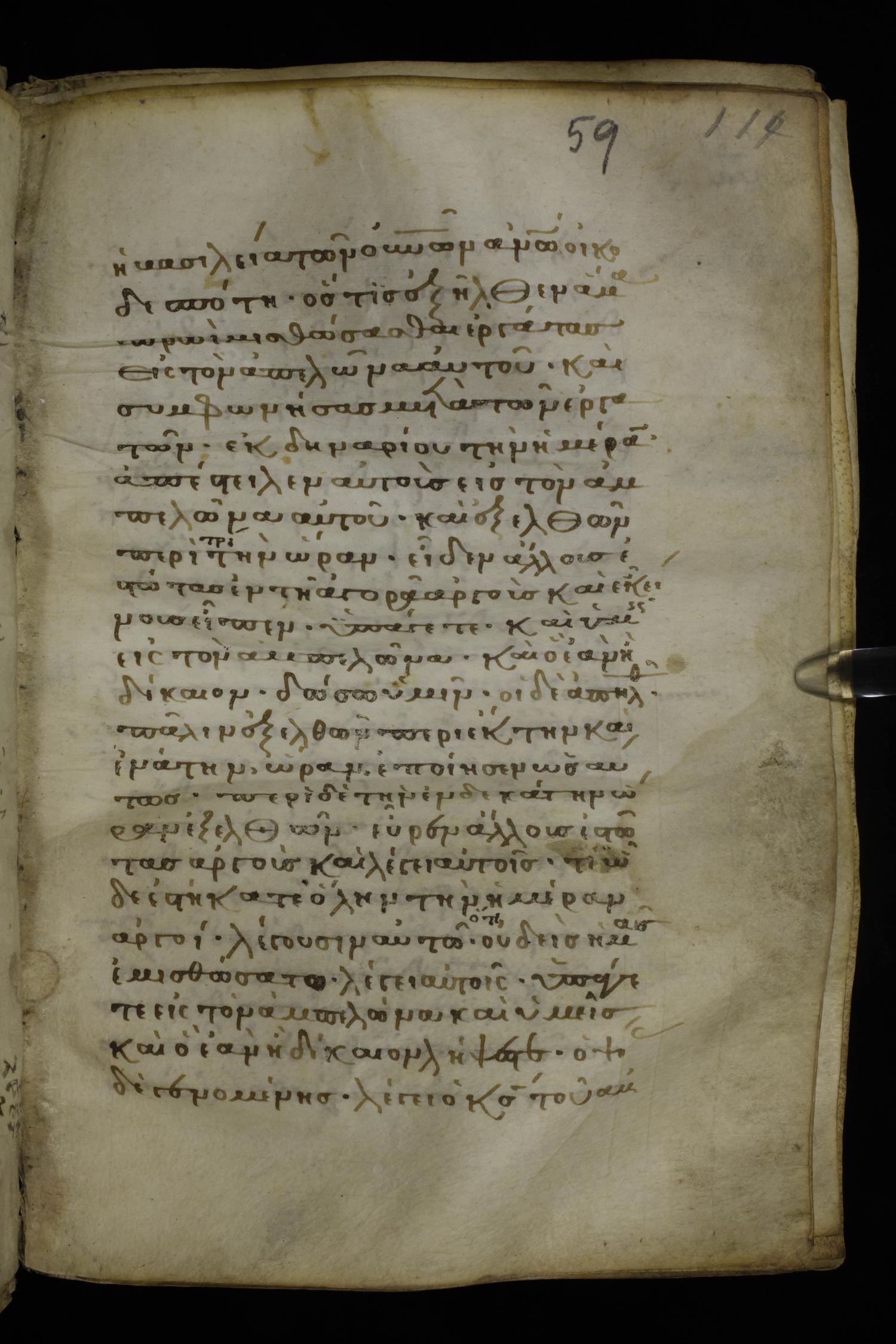Thirteenth century minuscule of the Gospels on parchment; 298 leaves, 1 column, 22-24 lines per column. Images were taken at the National Library of Greece in Athens.