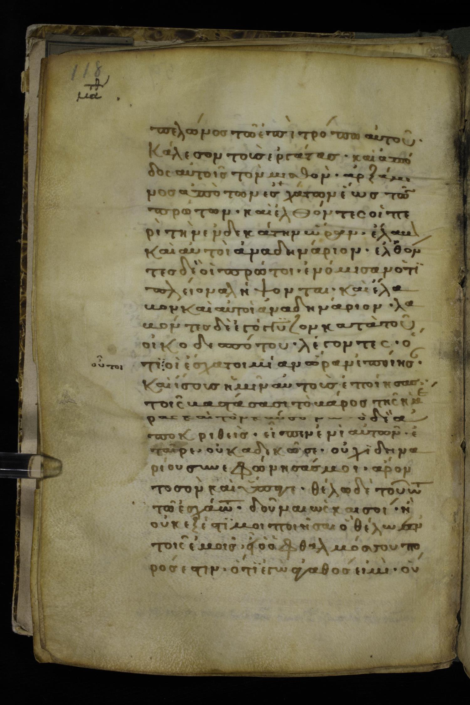 Thirteenth century minuscule of the Gospels on parchment; 298 leaves, 1 column, 22-24 lines per column. Images were taken at the National Library of Greece in Athens.