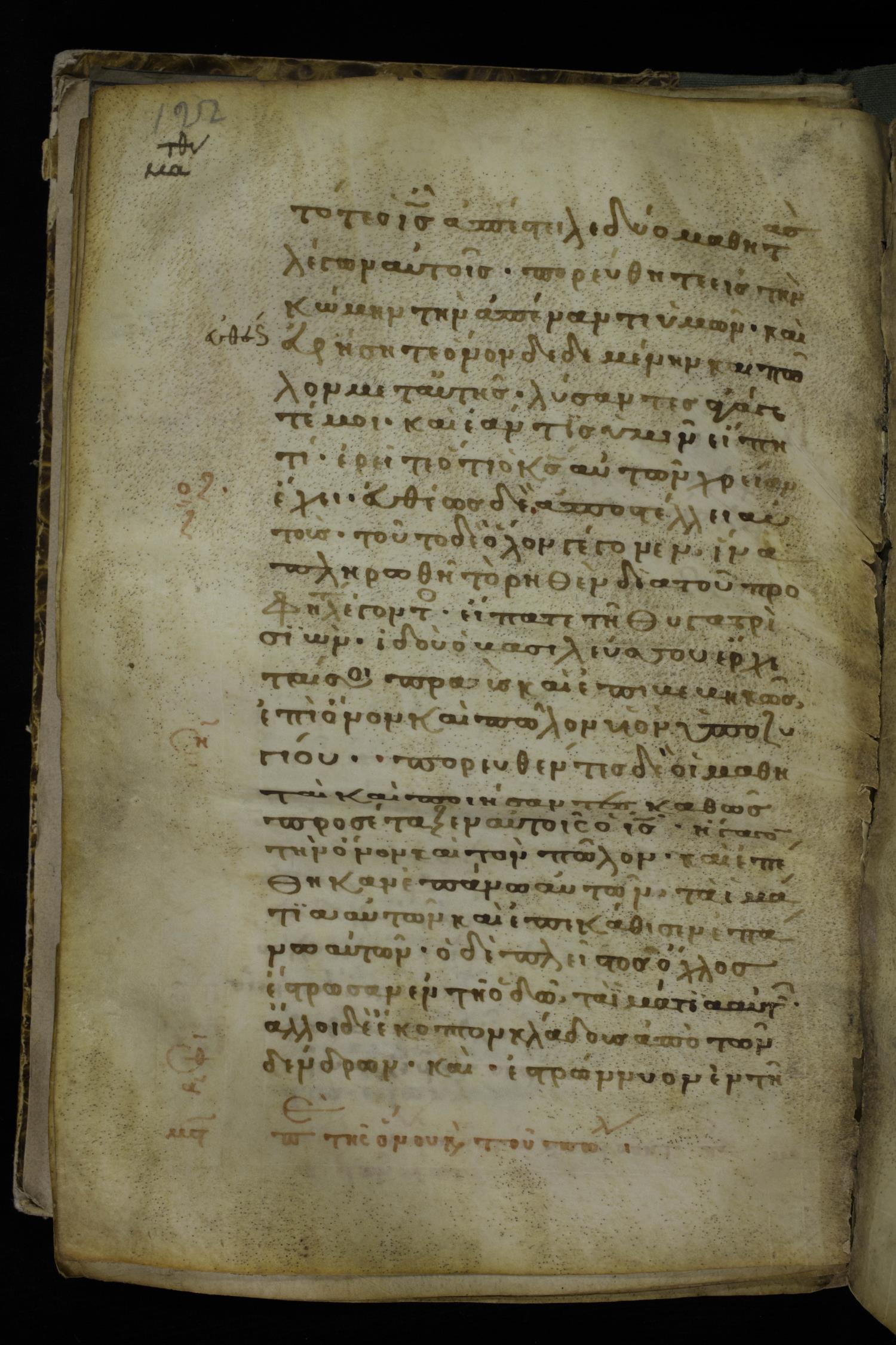 Thirteenth century minuscule of the Gospels on parchment; 298 leaves, 1 column, 22-24 lines per column. Images were taken at the National Library of Greece in Athens.
