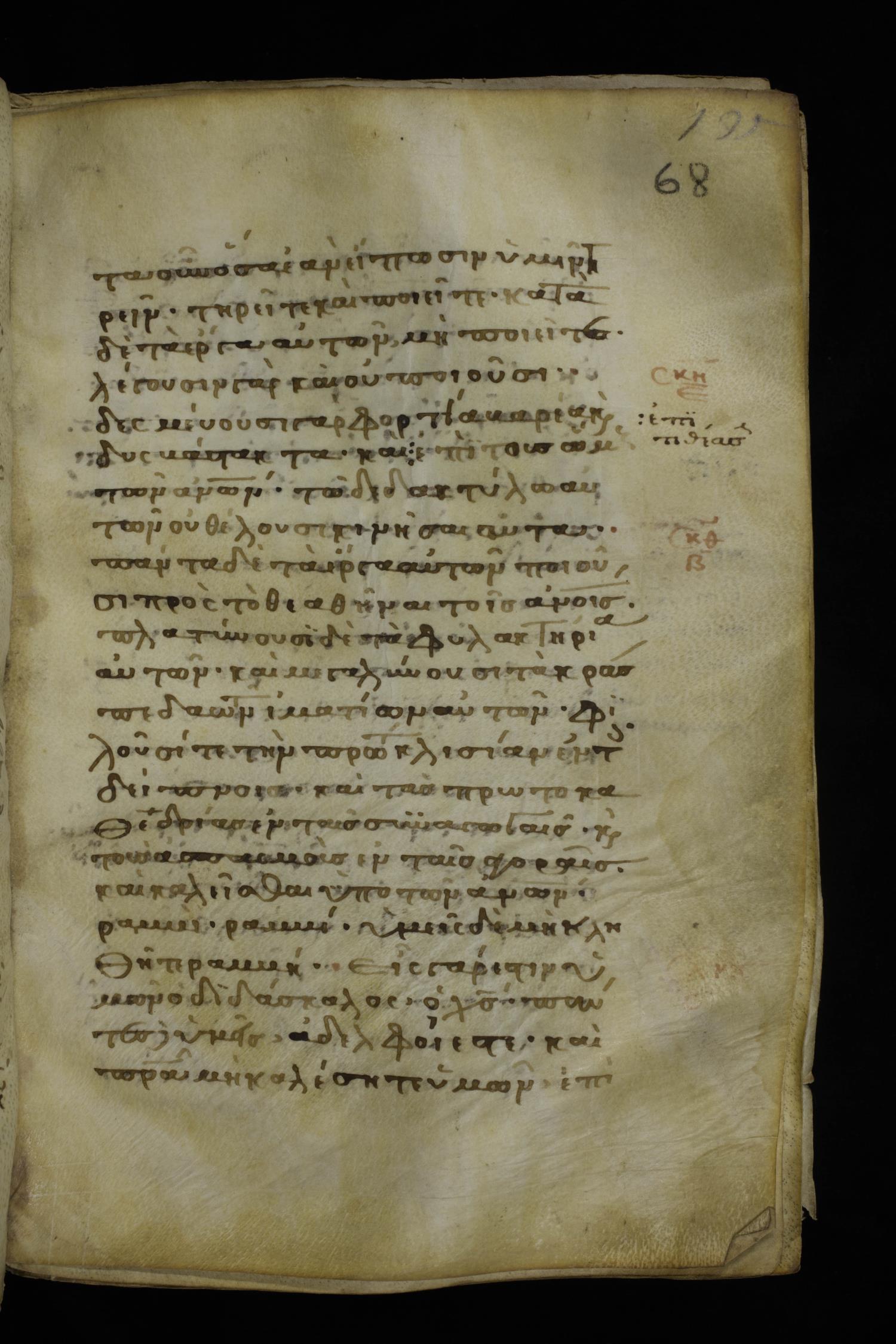 Thirteenth century minuscule of the Gospels on parchment; 298 leaves, 1 column, 22-24 lines per column. Images were taken at the National Library of Greece in Athens.