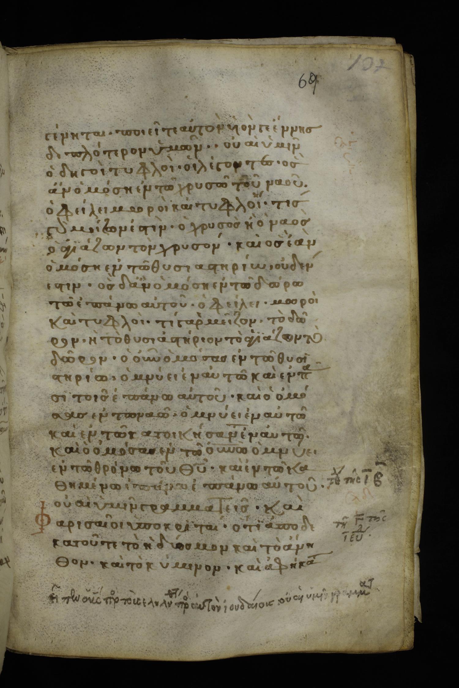 Thirteenth century minuscule of the Gospels on parchment; 298 leaves, 1 column, 22-24 lines per column. Images were taken at the National Library of Greece in Athens.