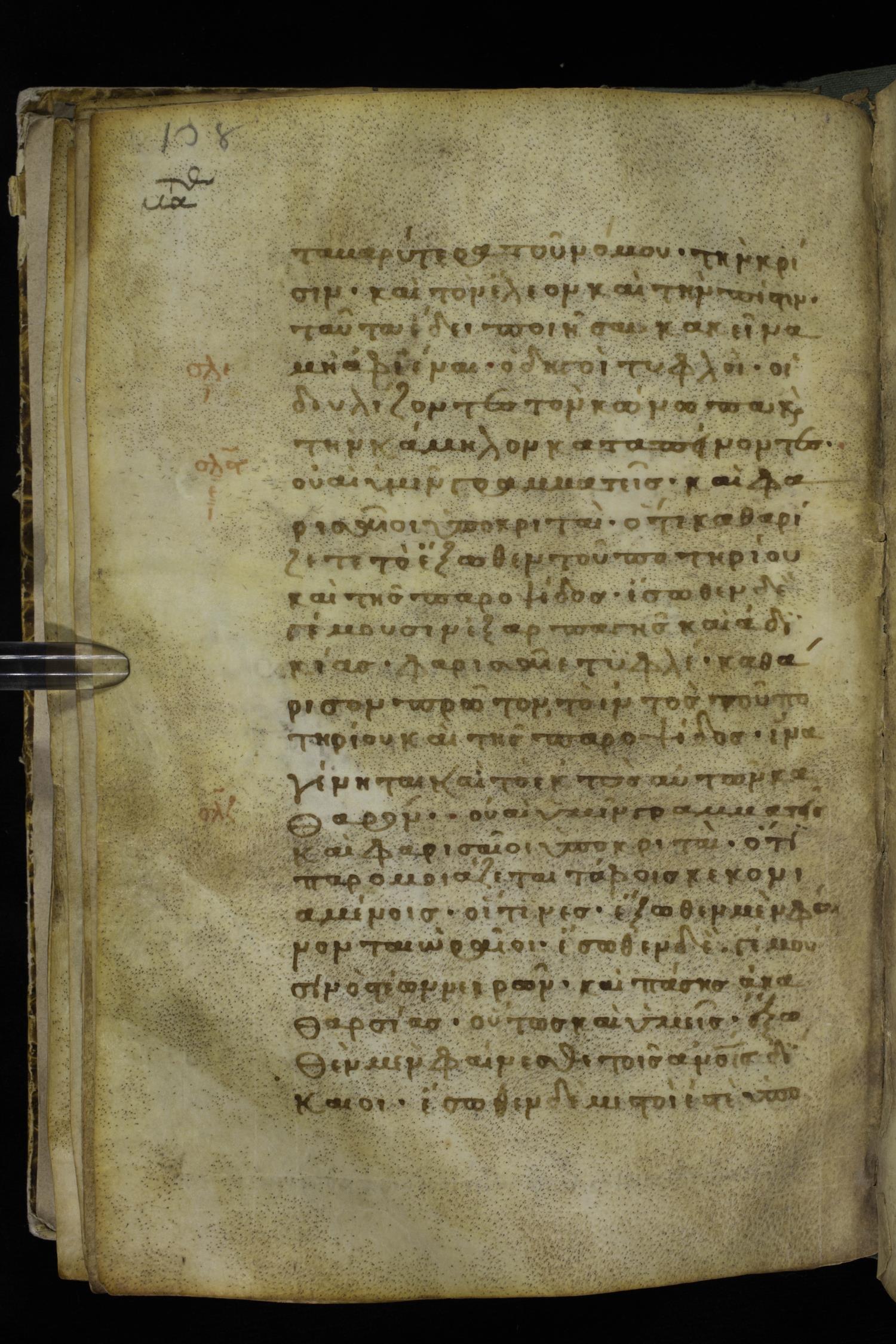 Thirteenth century minuscule of the Gospels on parchment; 298 leaves, 1 column, 22-24 lines per column. Images were taken at the National Library of Greece in Athens.