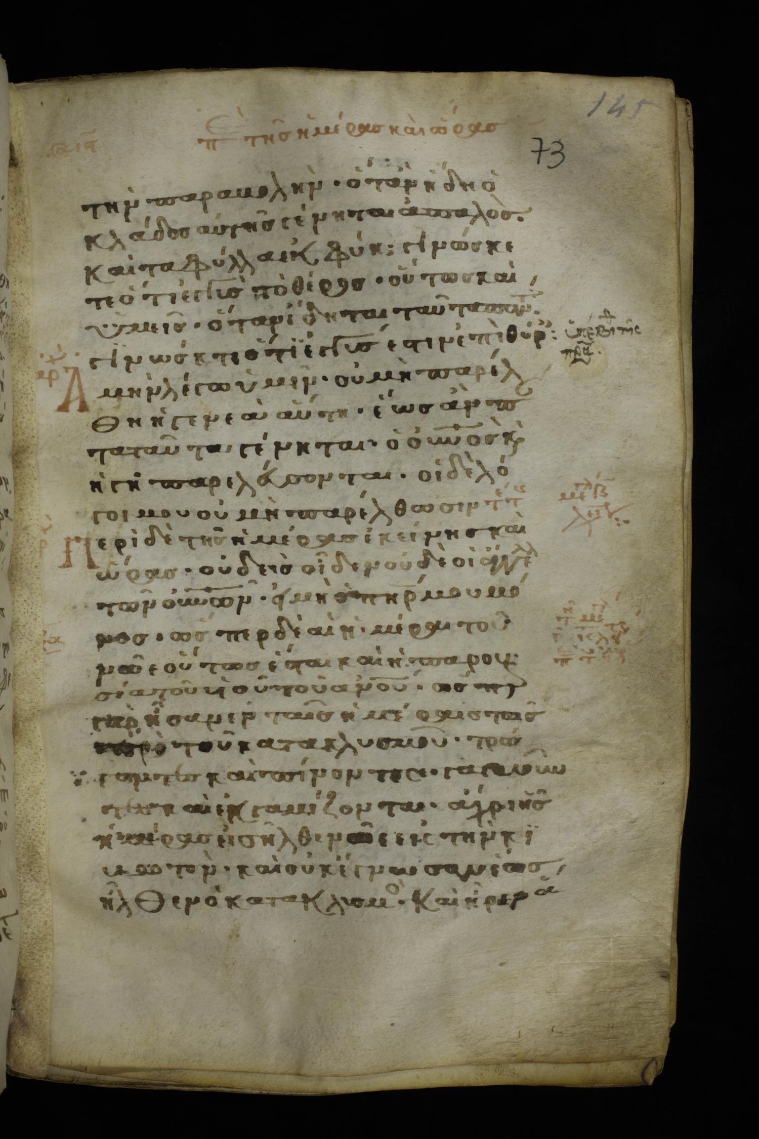 Thirteenth century minuscule of the Gospels on parchment; 298 leaves, 1 column, 22-24 lines per column. Images were taken at the National Library of Greece in Athens.