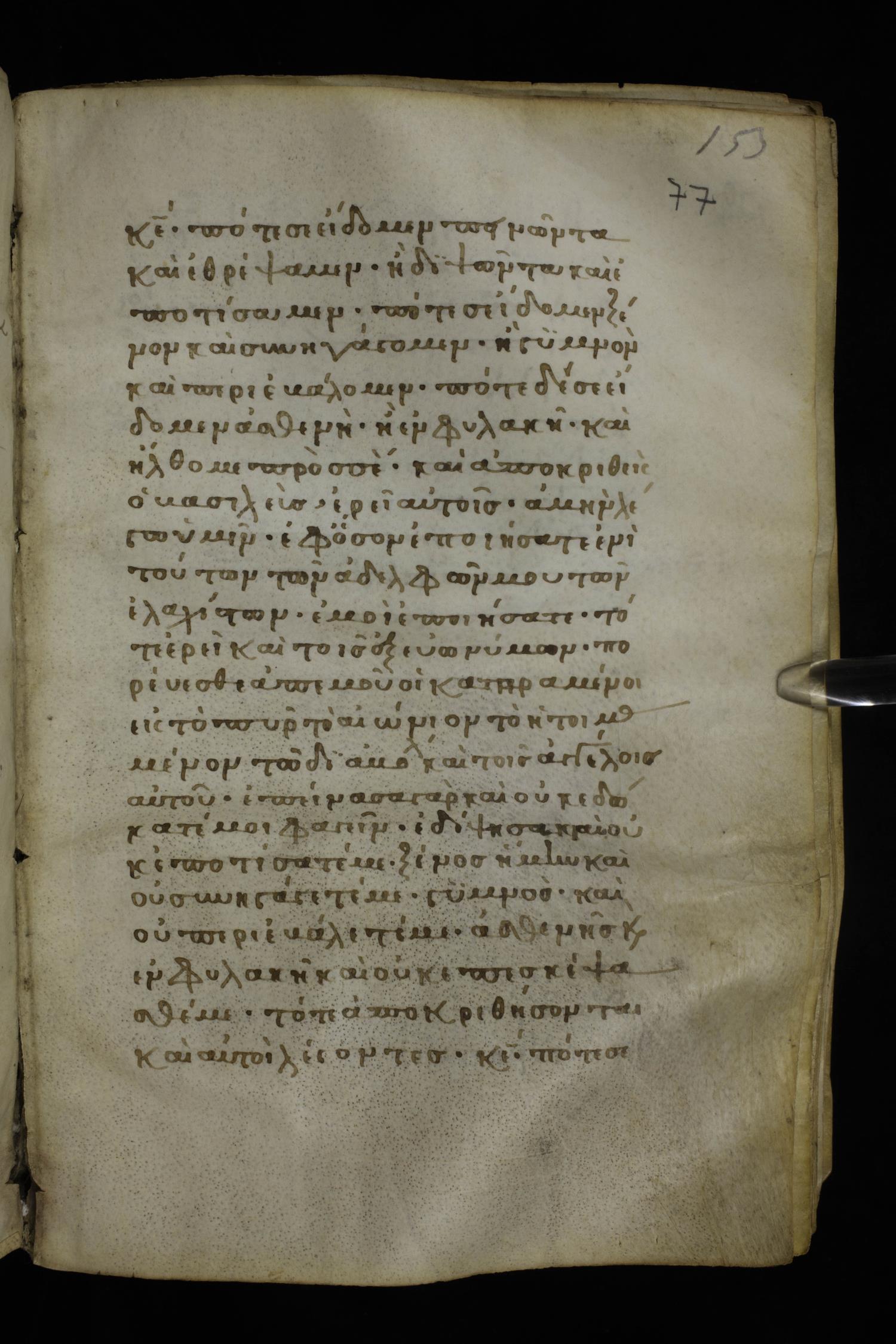 Thirteenth century minuscule of the Gospels on parchment; 298 leaves, 1 column, 22-24 lines per column. Images were taken at the National Library of Greece in Athens.