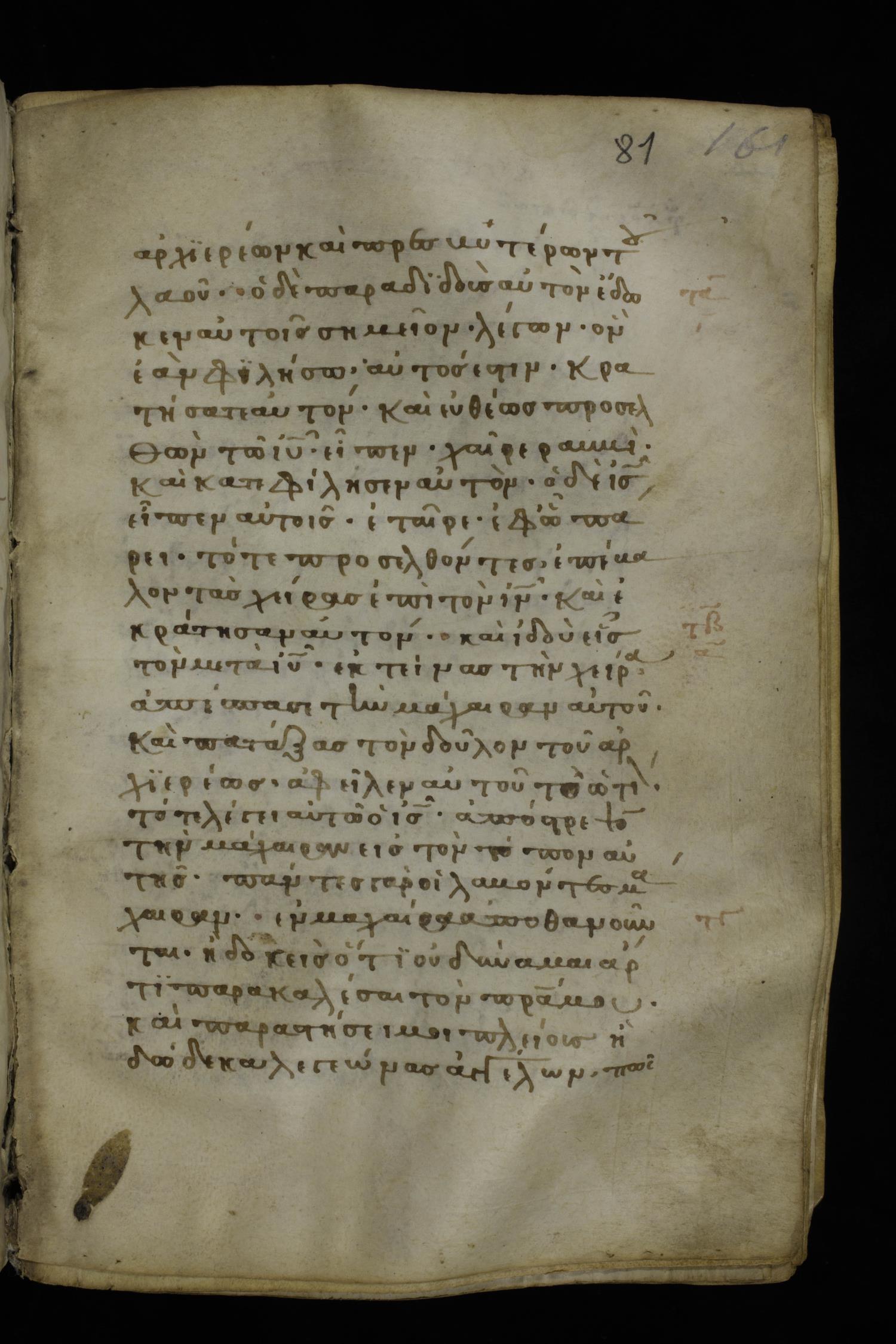 Thirteenth century minuscule of the Gospels on parchment; 298 leaves, 1 column, 22-24 lines per column. Images were taken at the National Library of Greece in Athens.