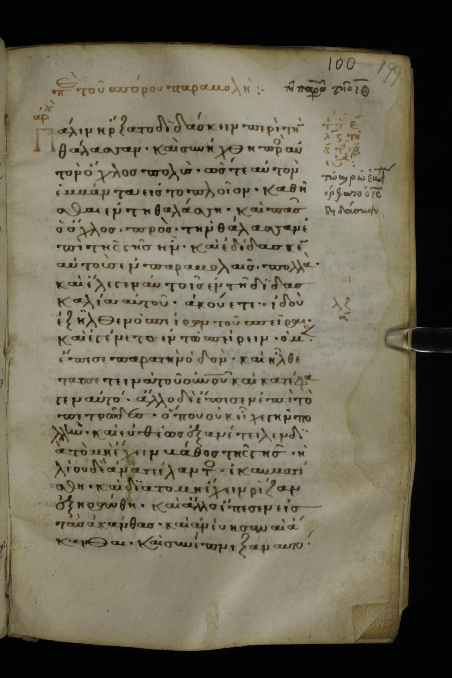 Thirteenth century minuscule of the Gospels on parchment; 298 leaves, 1 column, 22-24 lines per column. Images were taken at the National Library of Greece in Athens.