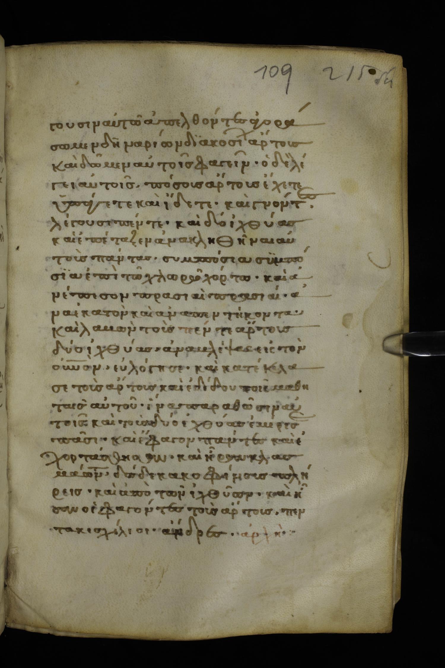 Thirteenth century minuscule of the Gospels on parchment; 298 leaves, 1 column, 22-24 lines per column. Images were taken at the National Library of Greece in Athens.