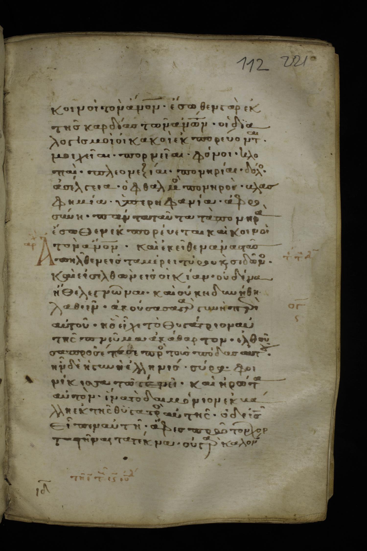 Thirteenth century minuscule of the Gospels on parchment; 298 leaves, 1 column, 22-24 lines per column. Images were taken at the National Library of Greece in Athens.