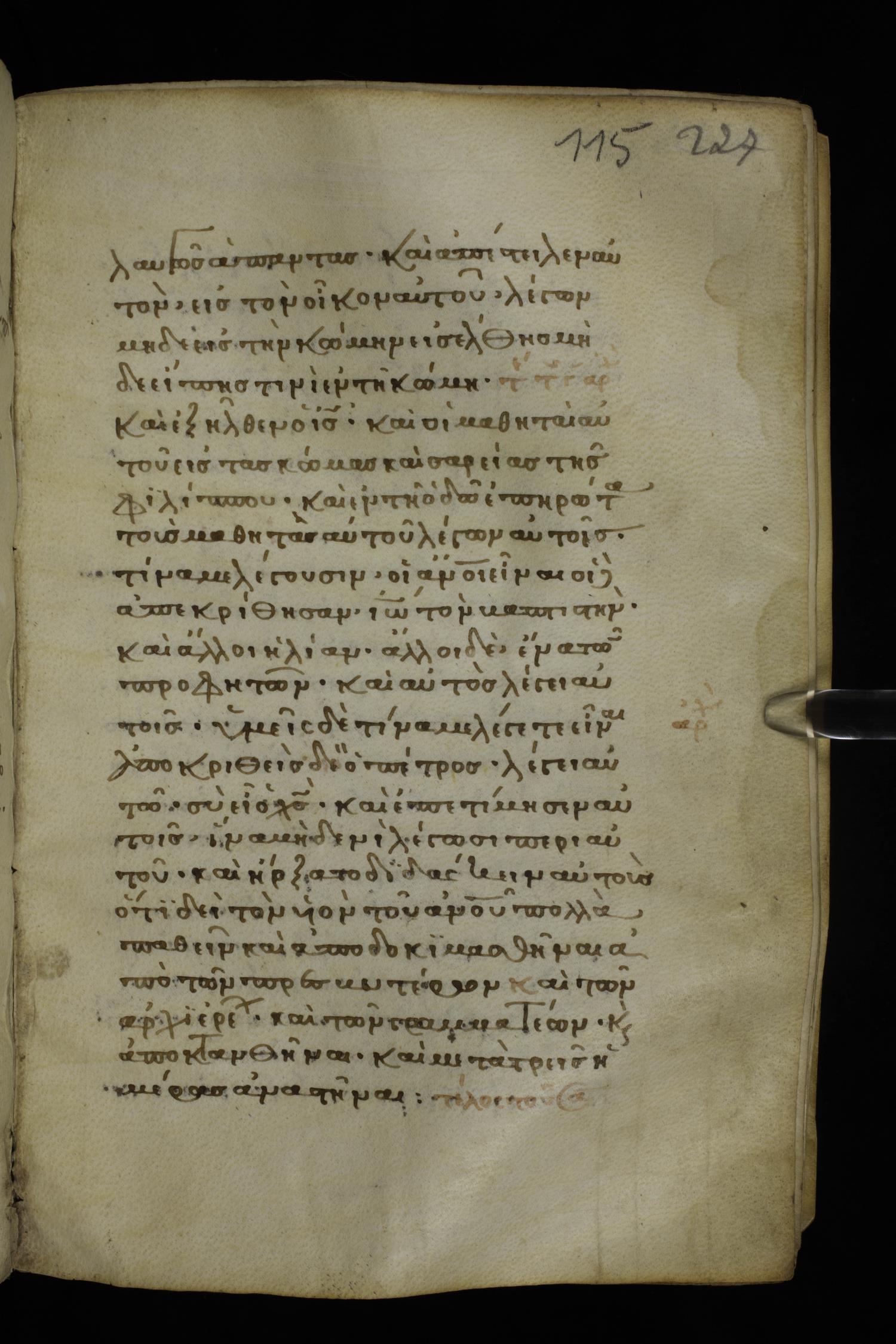 Thirteenth century minuscule of the Gospels on parchment; 298 leaves, 1 column, 22-24 lines per column. Images were taken at the National Library of Greece in Athens.