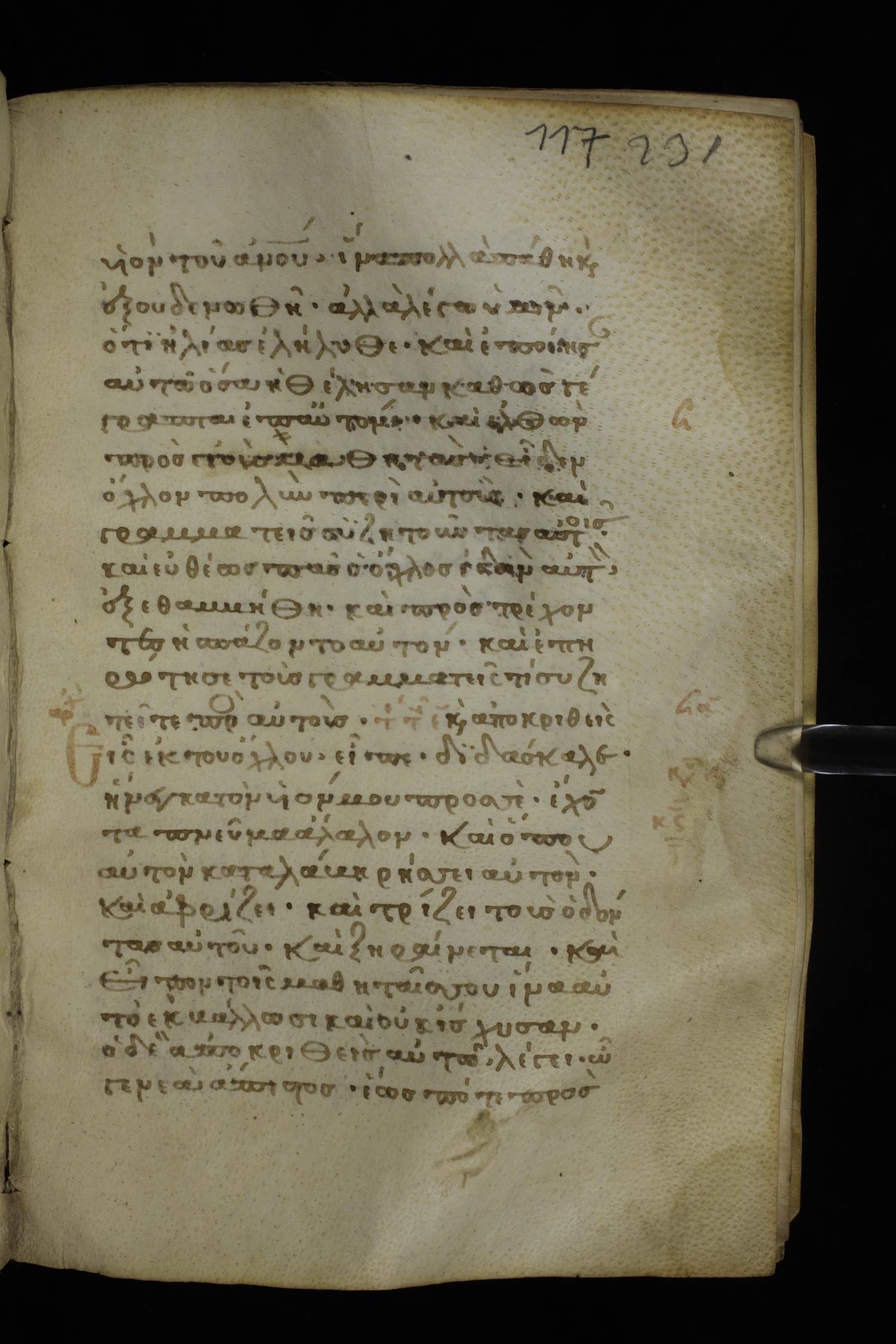 Thirteenth century minuscule of the Gospels on parchment; 298 leaves, 1 column, 22-24 lines per column. Images were taken at the National Library of Greece in Athens.