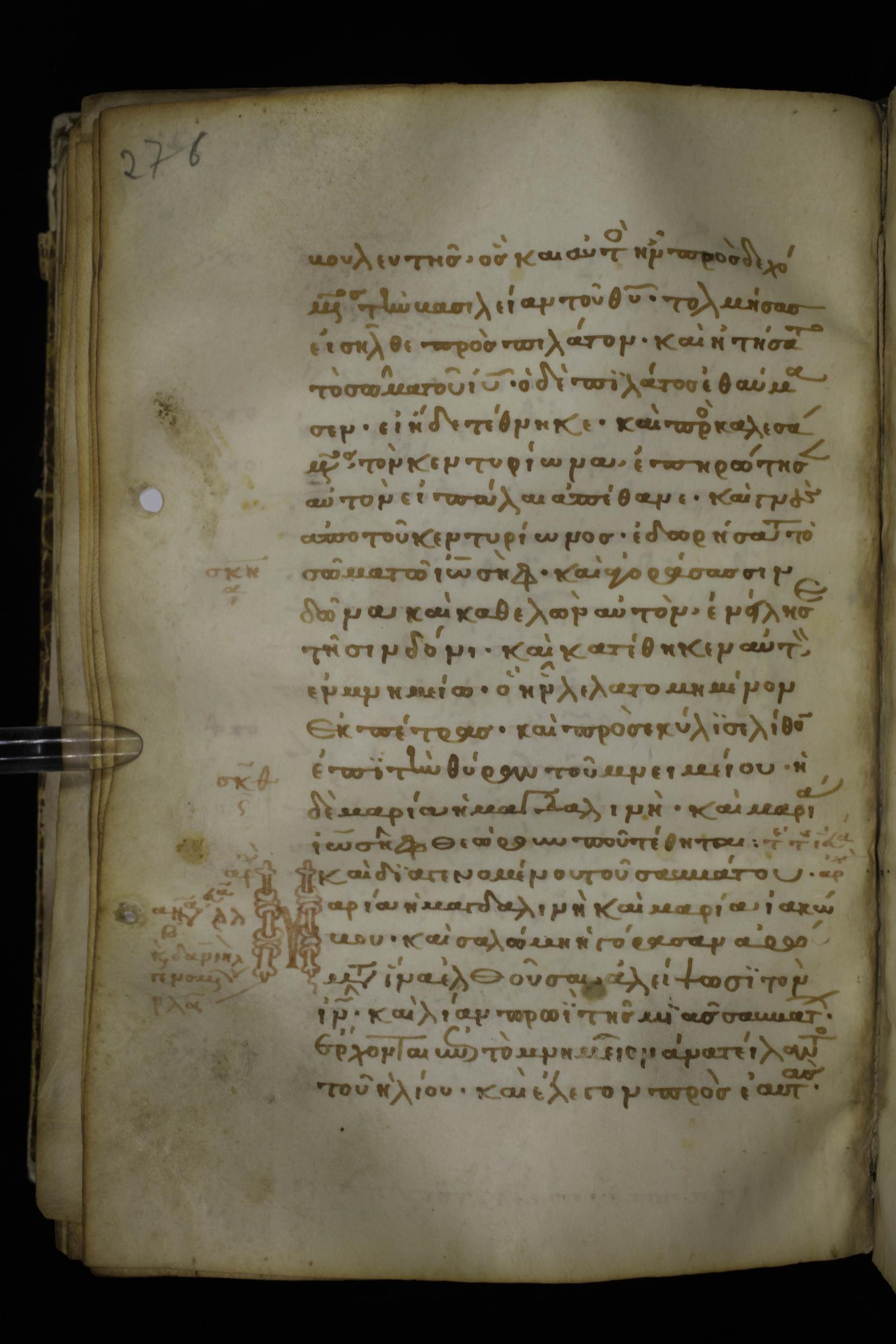 Thirteenth century minuscule of the Gospels on parchment; 298 leaves, 1 column, 22-24 lines per column. Images were taken at the National Library of Greece in Athens.