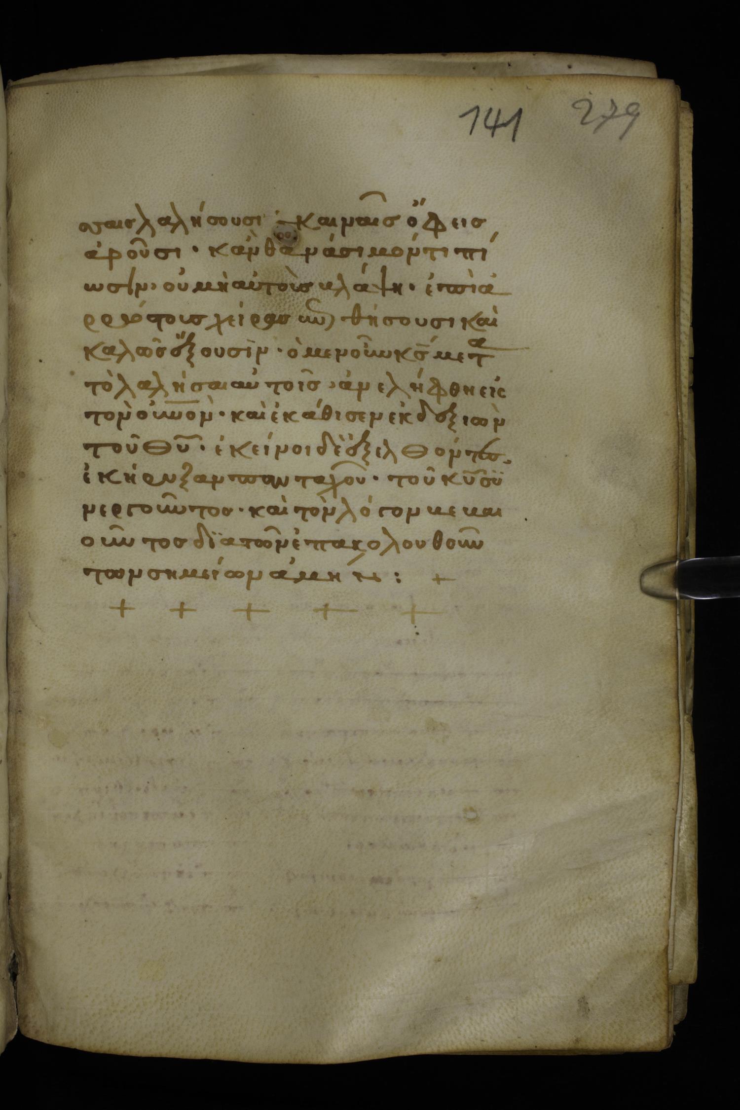Thirteenth century minuscule of the Gospels on parchment; 298 leaves, 1 column, 22-24 lines per column. Images were taken at the National Library of Greece in Athens.