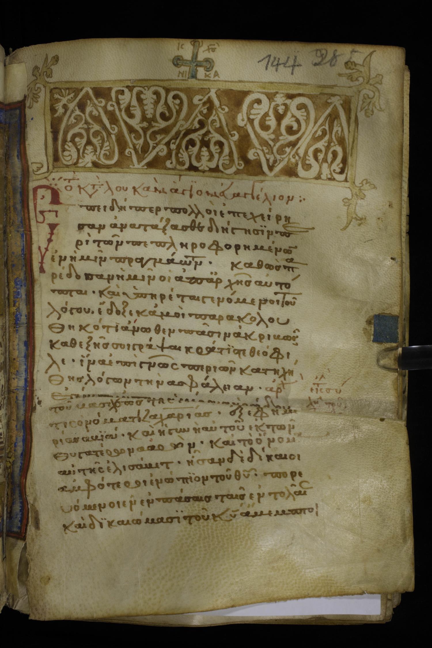 Thirteenth century minuscule of the Gospels on parchment; 298 leaves, 1 column, 22-24 lines per column. Images were taken at the National Library of Greece in Athens.