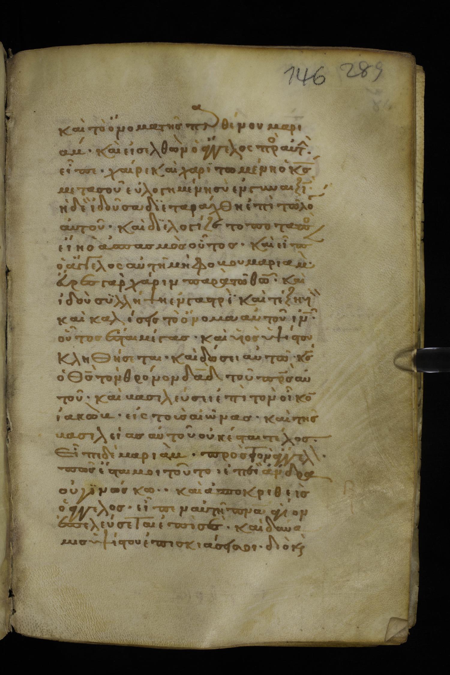 Thirteenth century minuscule of the Gospels on parchment; 298 leaves, 1 column, 22-24 lines per column. Images were taken at the National Library of Greece in Athens.