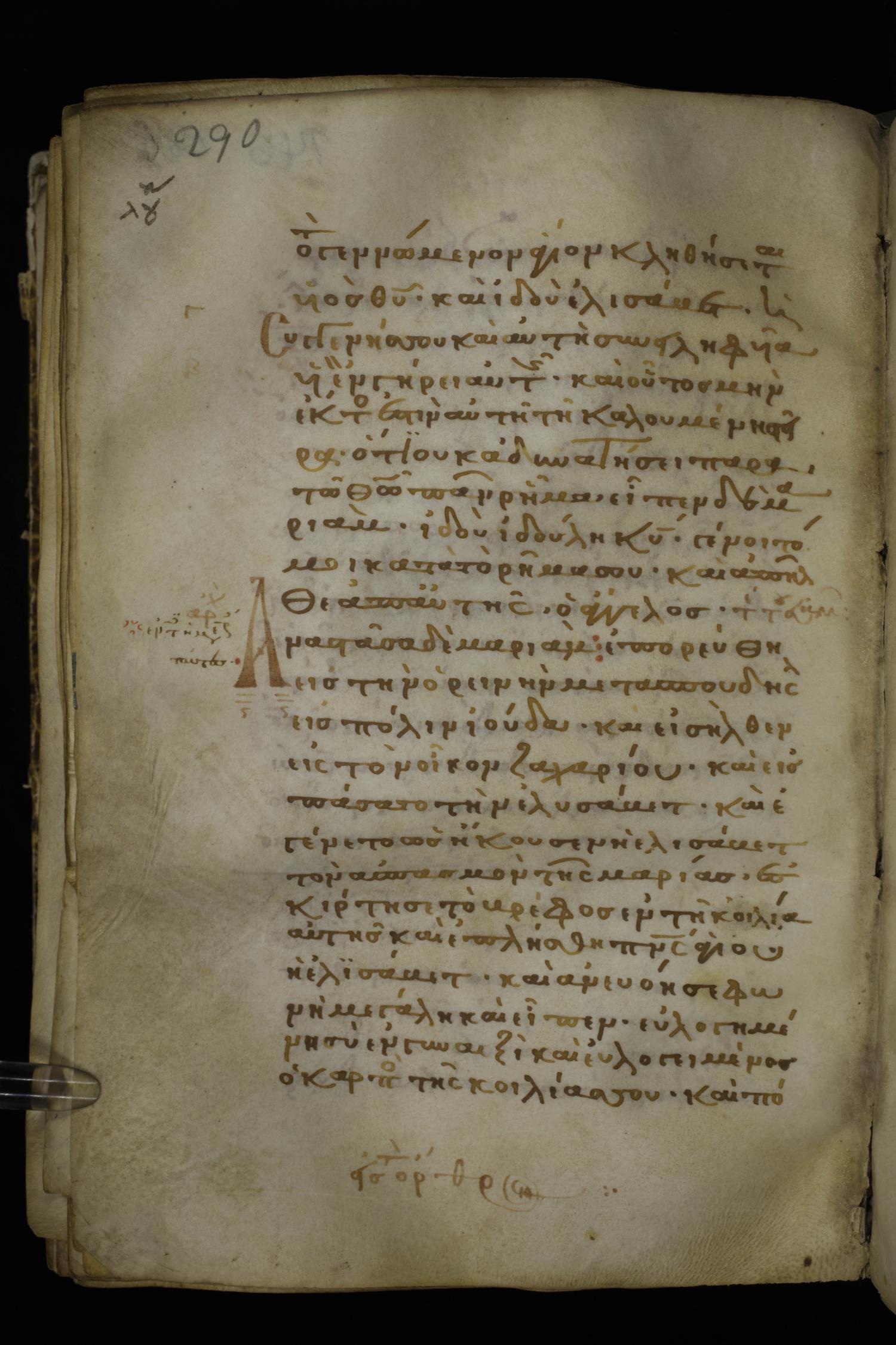 Thirteenth century minuscule of the Gospels on parchment; 298 leaves, 1 column, 22-24 lines per column. Images were taken at the National Library of Greece in Athens.