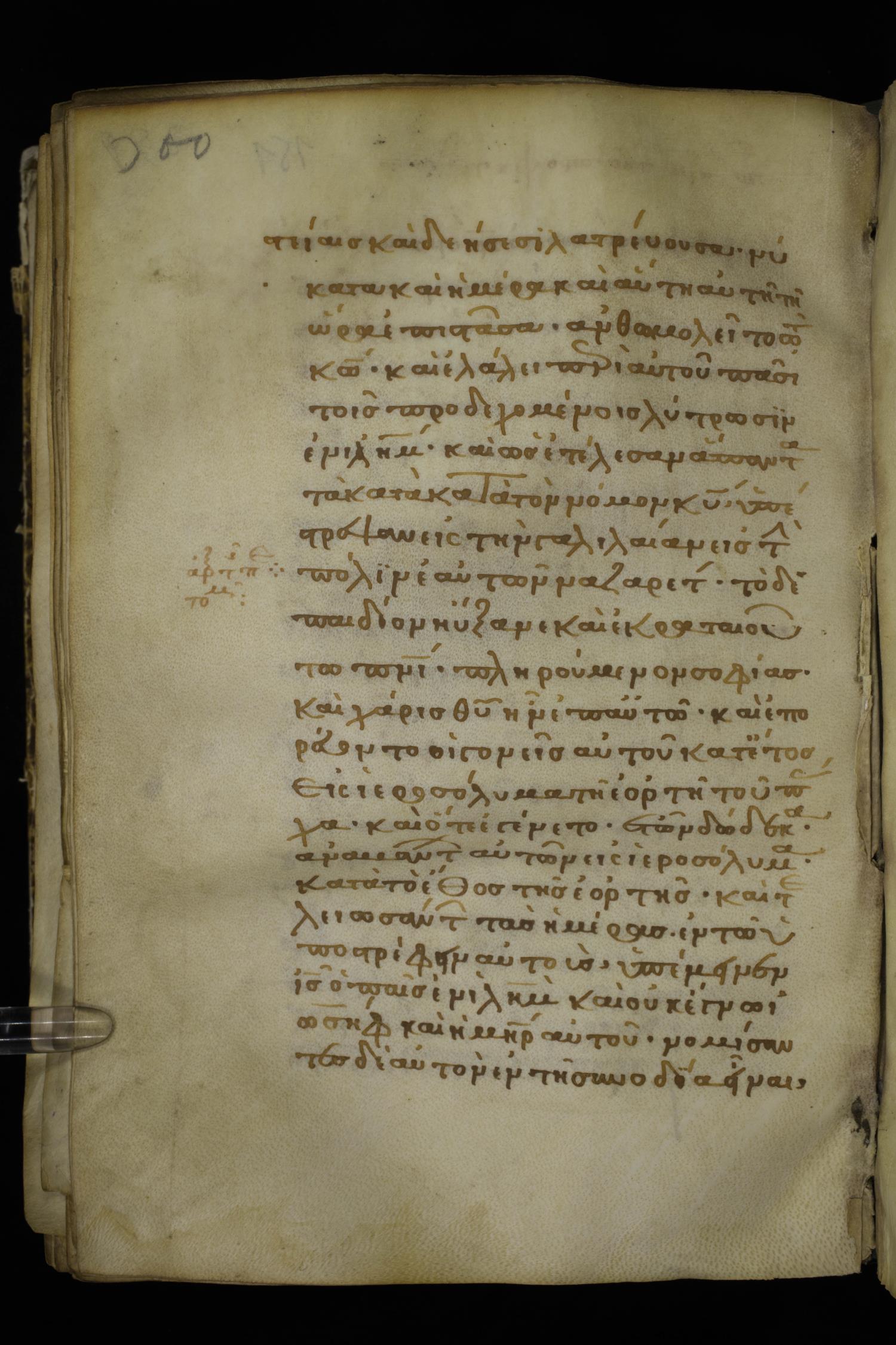 Thirteenth century minuscule of the Gospels on parchment; 298 leaves, 1 column, 22-24 lines per column. Images were taken at the National Library of Greece in Athens.