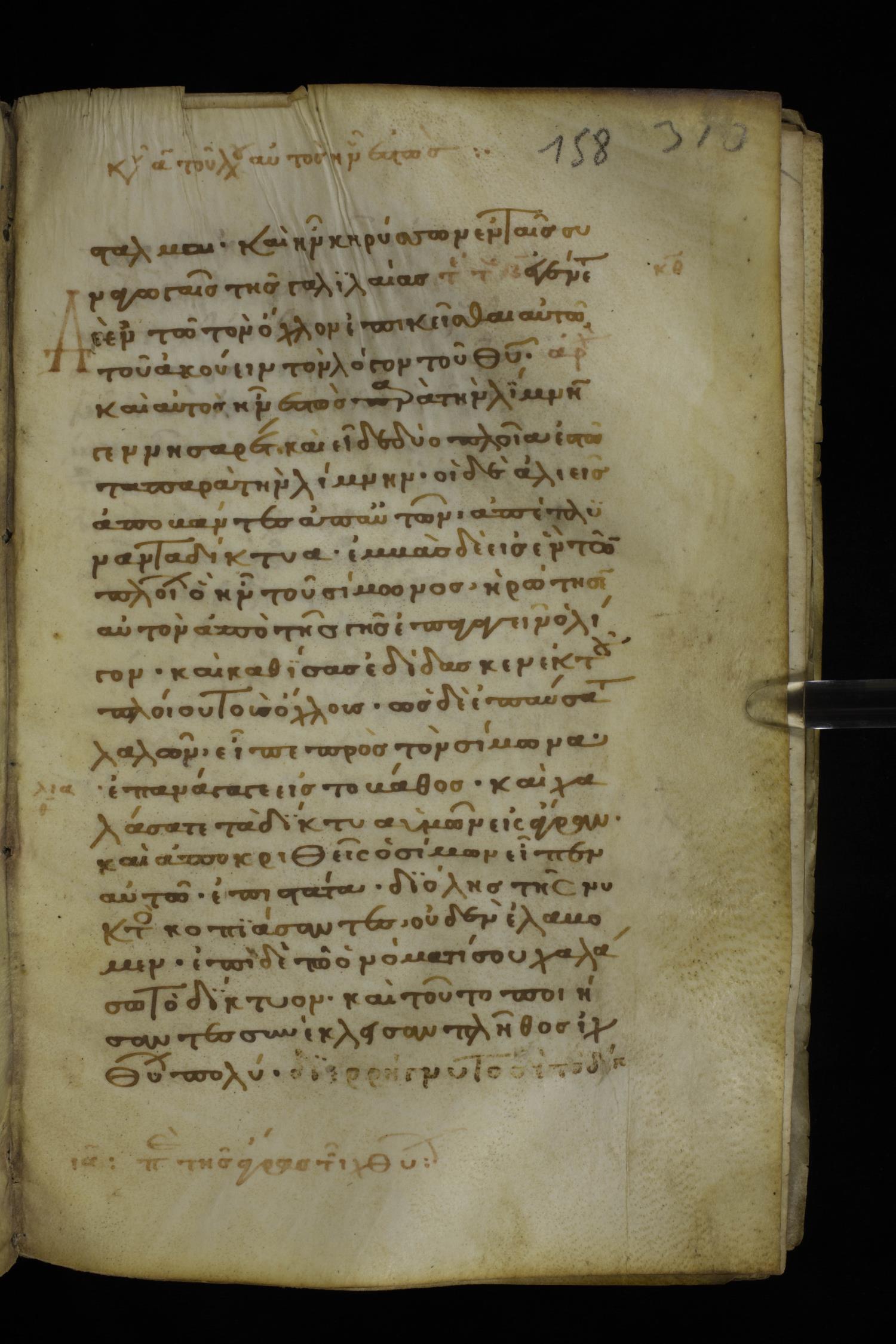 Thirteenth century minuscule of the Gospels on parchment; 298 leaves, 1 column, 22-24 lines per column. Images were taken at the National Library of Greece in Athens.
