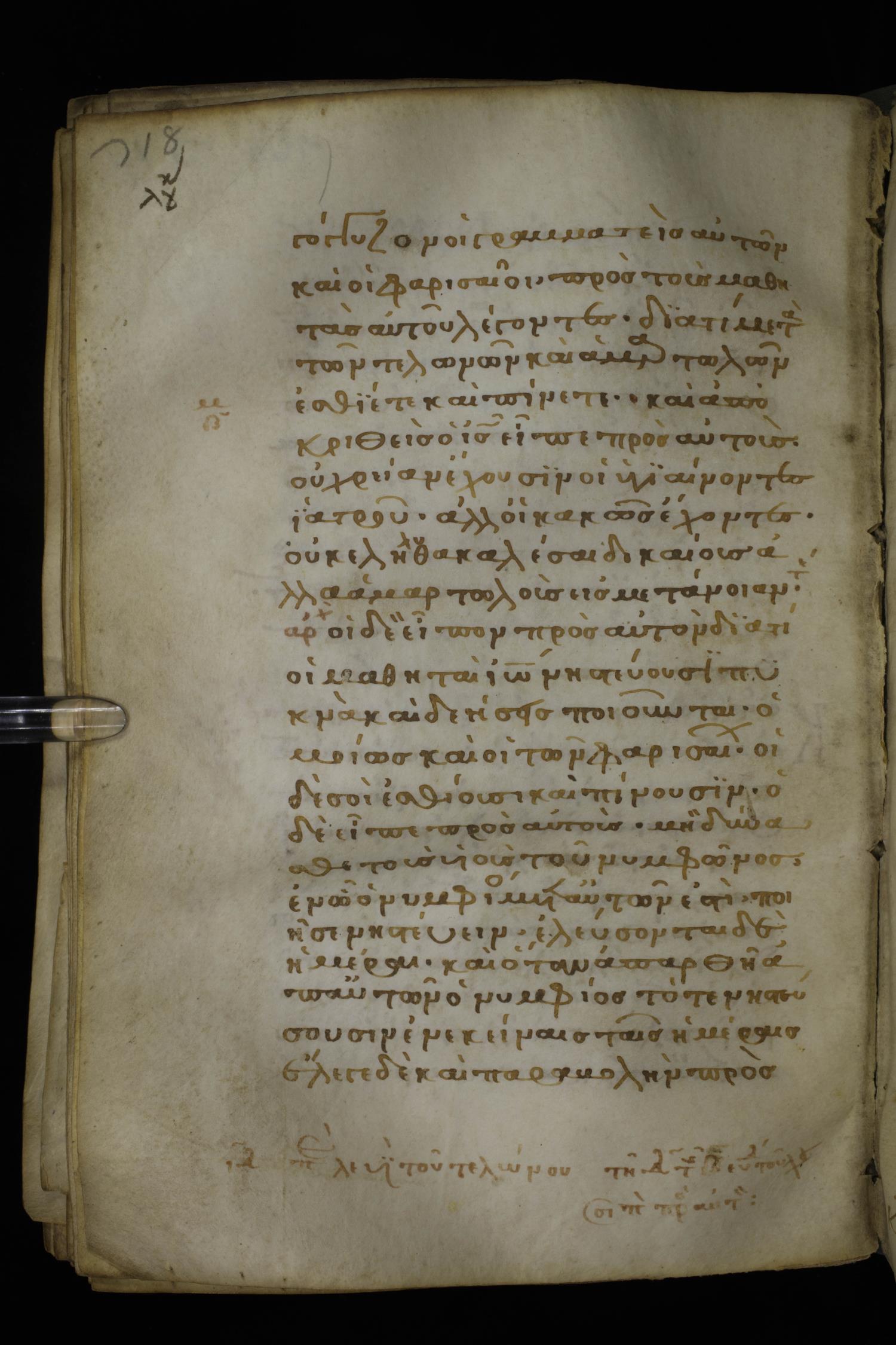 Thirteenth century minuscule of the Gospels on parchment; 298 leaves, 1 column, 22-24 lines per column. Images were taken at the National Library of Greece in Athens.