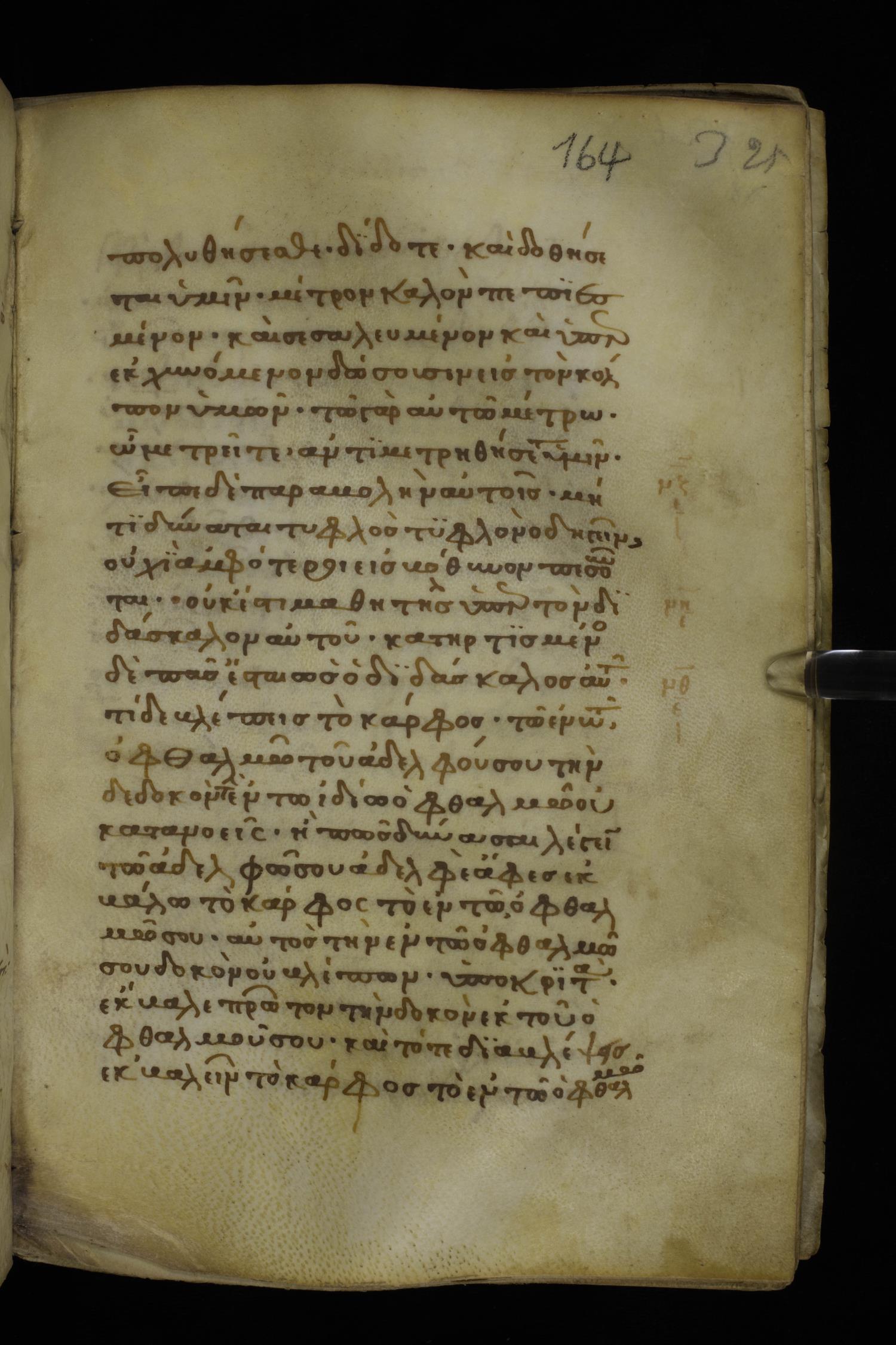 Thirteenth century minuscule of the Gospels on parchment; 298 leaves, 1 column, 22-24 lines per column. Images were taken at the National Library of Greece in Athens.