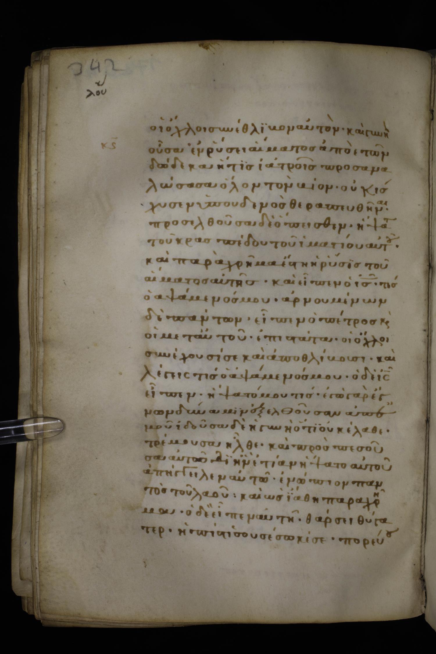 Thirteenth century minuscule of the Gospels on parchment; 298 leaves, 1 column, 22-24 lines per column. Images were taken at the National Library of Greece in Athens.