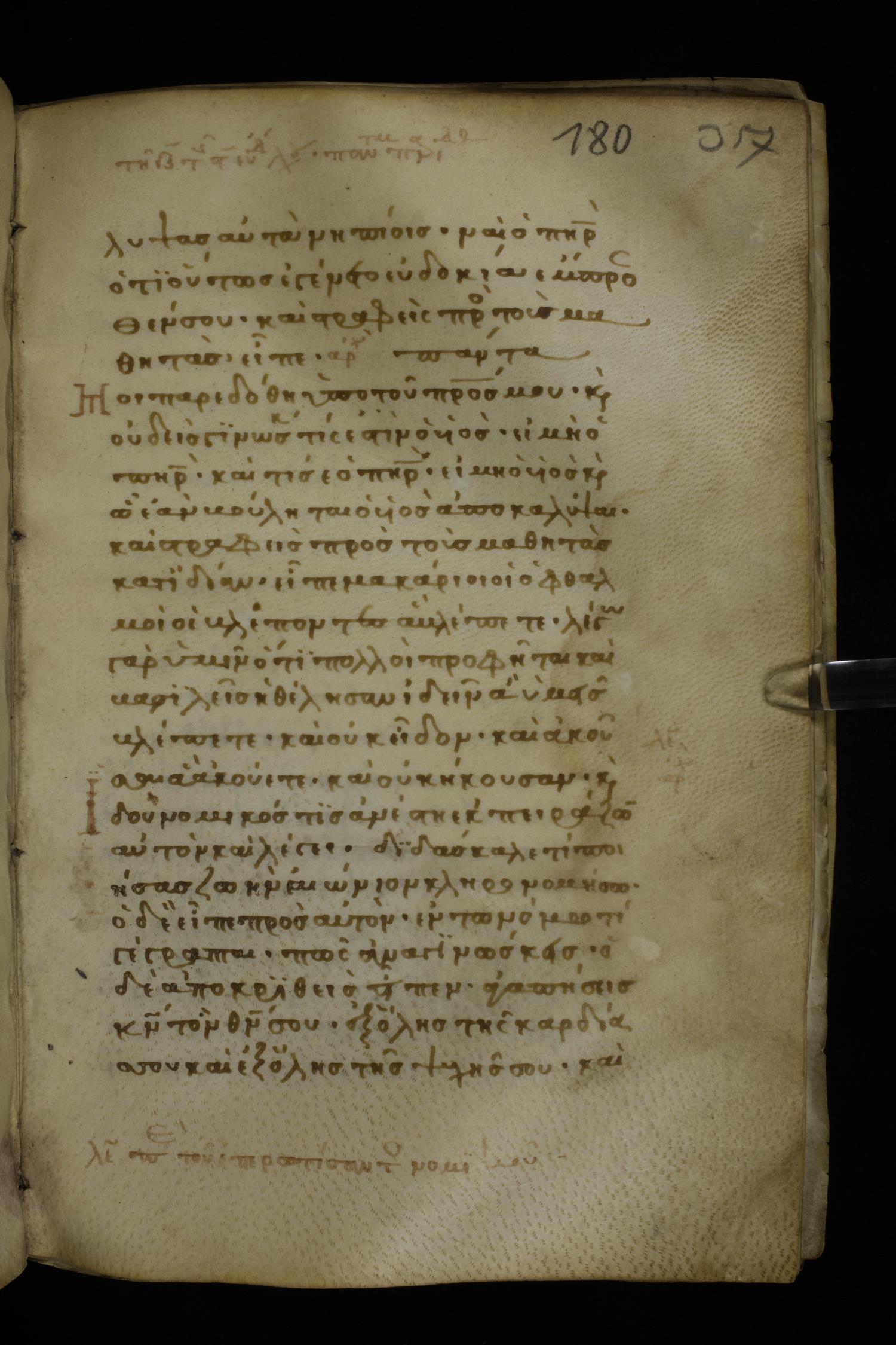Thirteenth century minuscule of the Gospels on parchment; 298 leaves, 1 column, 22-24 lines per column. Images were taken at the National Library of Greece in Athens.