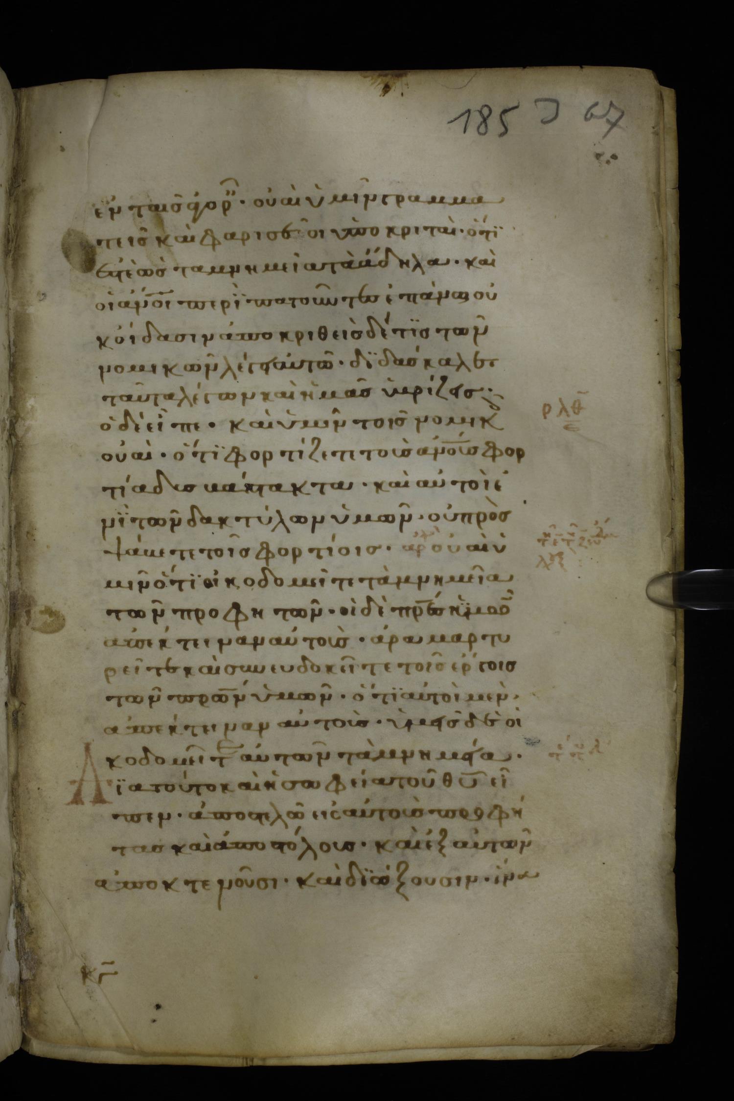Thirteenth century minuscule of the Gospels on parchment; 298 leaves, 1 column, 22-24 lines per column. Images were taken at the National Library of Greece in Athens.