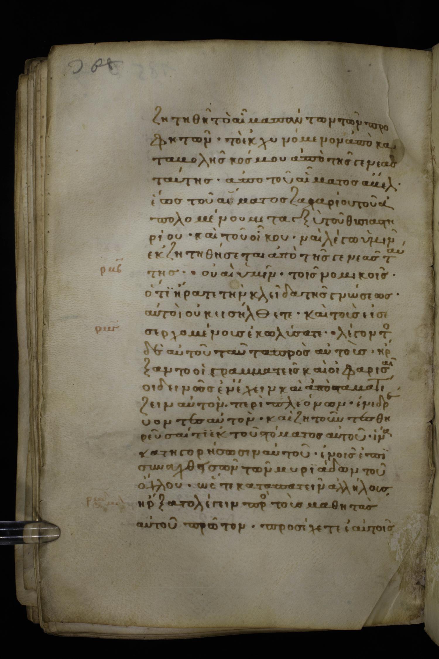 Thirteenth century minuscule of the Gospels on parchment; 298 leaves, 1 column, 22-24 lines per column. Images were taken at the National Library of Greece in Athens.