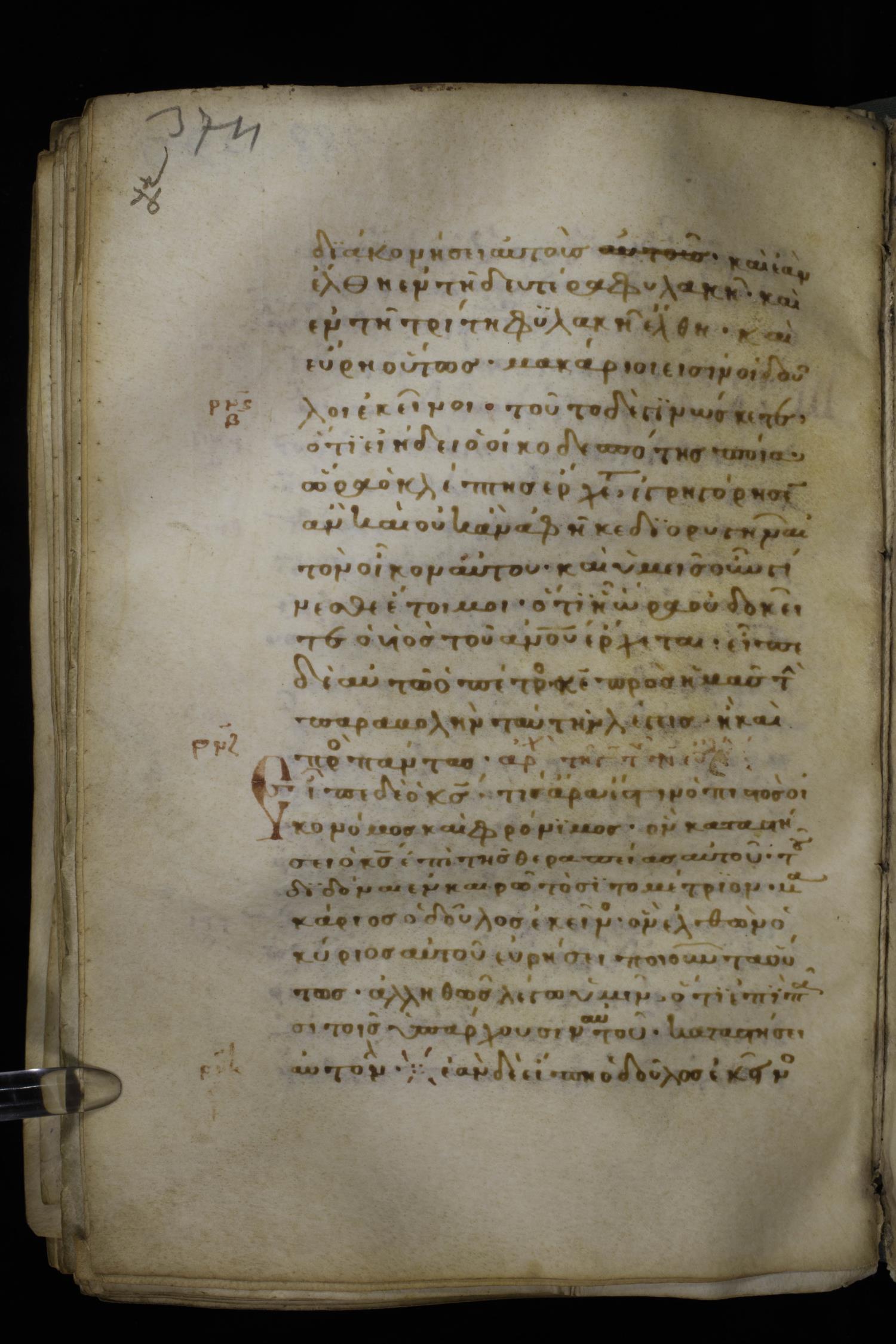 Thirteenth century minuscule of the Gospels on parchment; 298 leaves, 1 column, 22-24 lines per column. Images were taken at the National Library of Greece in Athens.