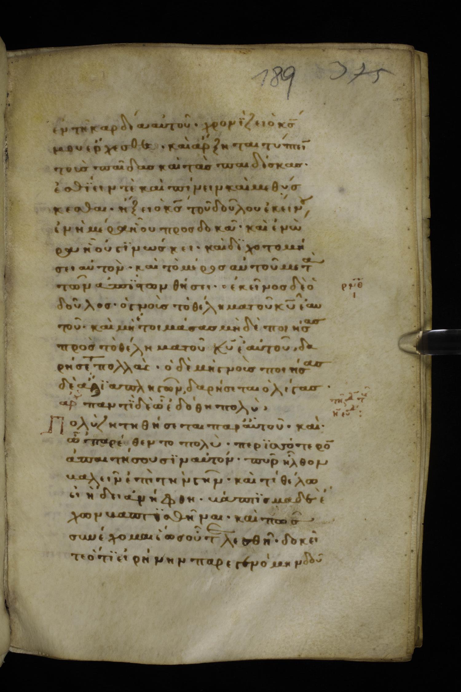 Thirteenth century minuscule of the Gospels on parchment; 298 leaves, 1 column, 22-24 lines per column. Images were taken at the National Library of Greece in Athens.