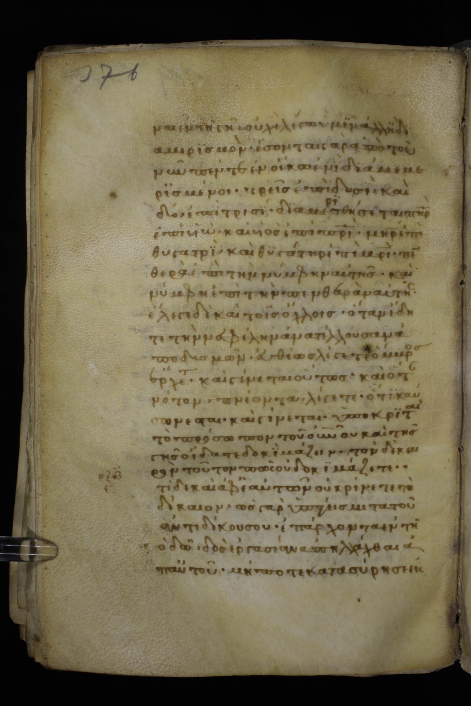 Thirteenth century minuscule of the Gospels on parchment; 298 leaves, 1 column, 22-24 lines per column. Images were taken at the National Library of Greece in Athens.