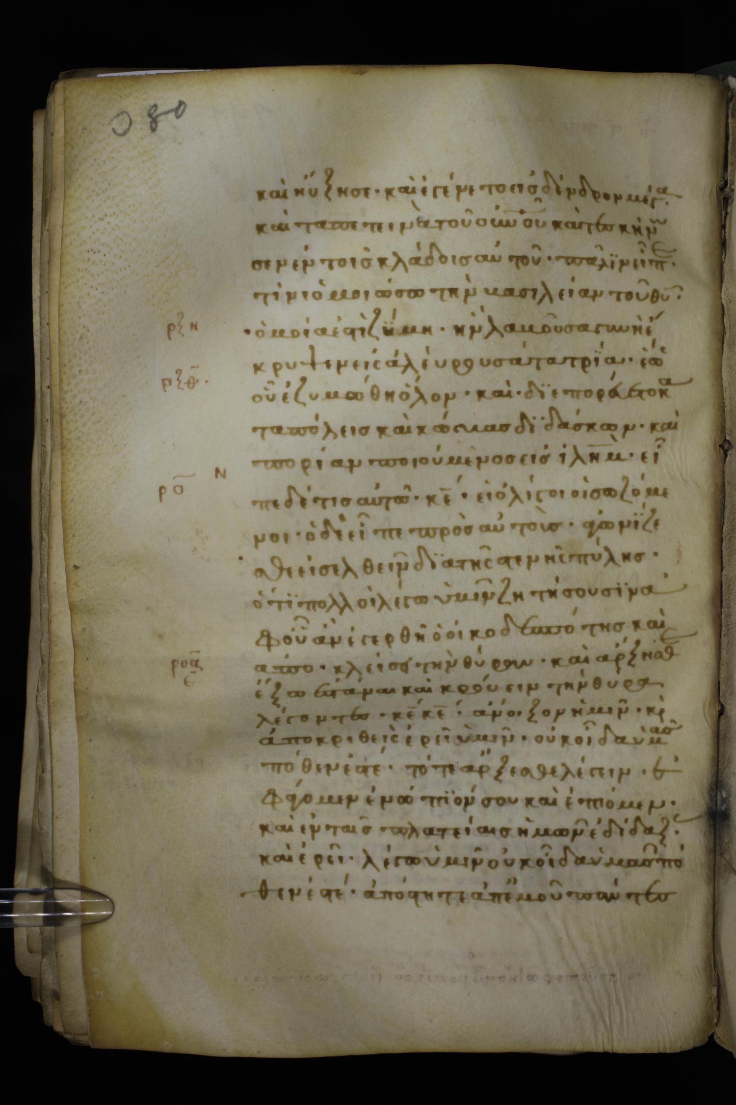 Thirteenth century minuscule of the Gospels on parchment; 298 leaves, 1 column, 22-24 lines per column. Images were taken at the National Library of Greece in Athens.