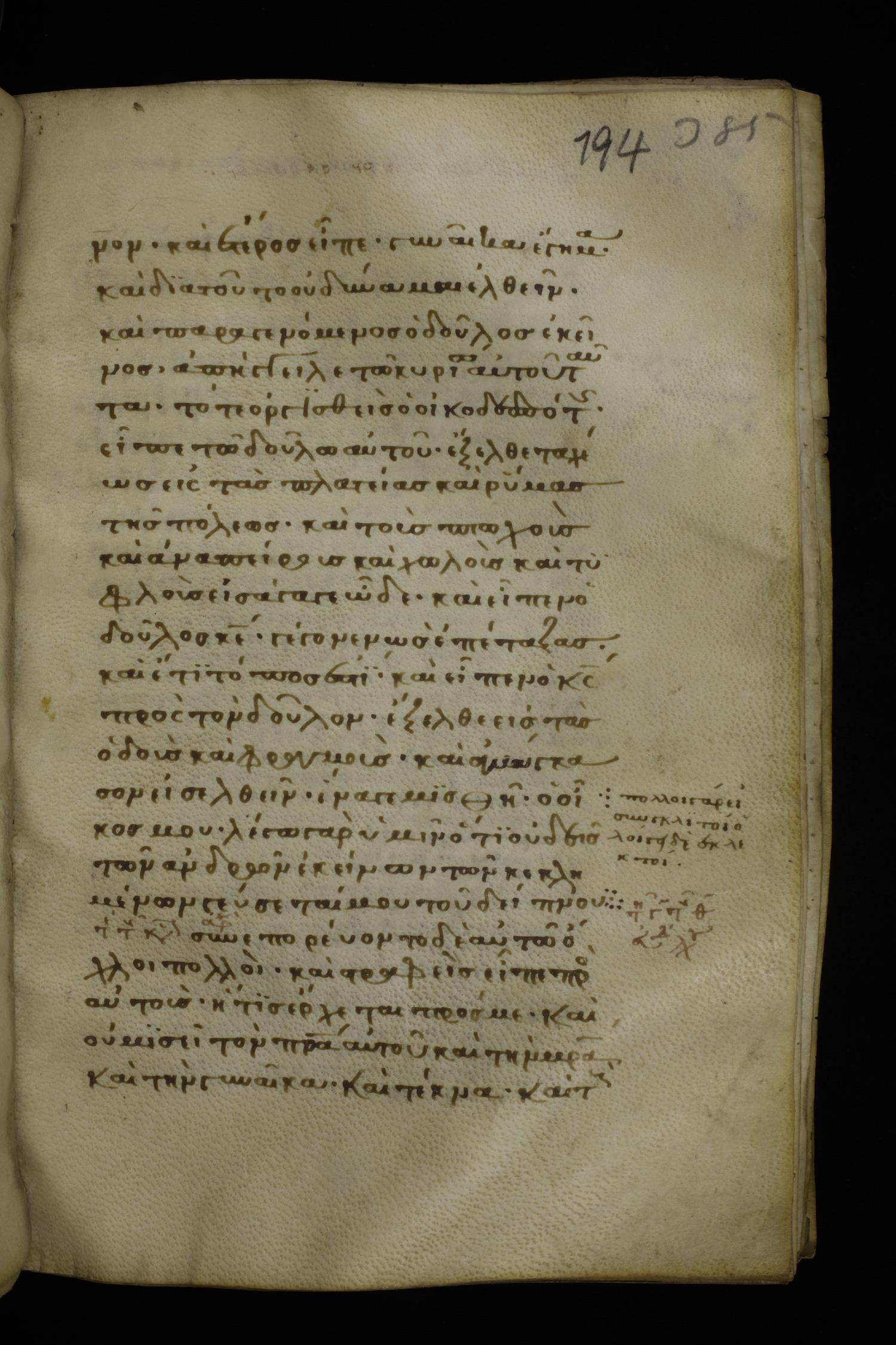 Thirteenth century minuscule of the Gospels on parchment; 298 leaves, 1 column, 22-24 lines per column. Images were taken at the National Library of Greece in Athens.