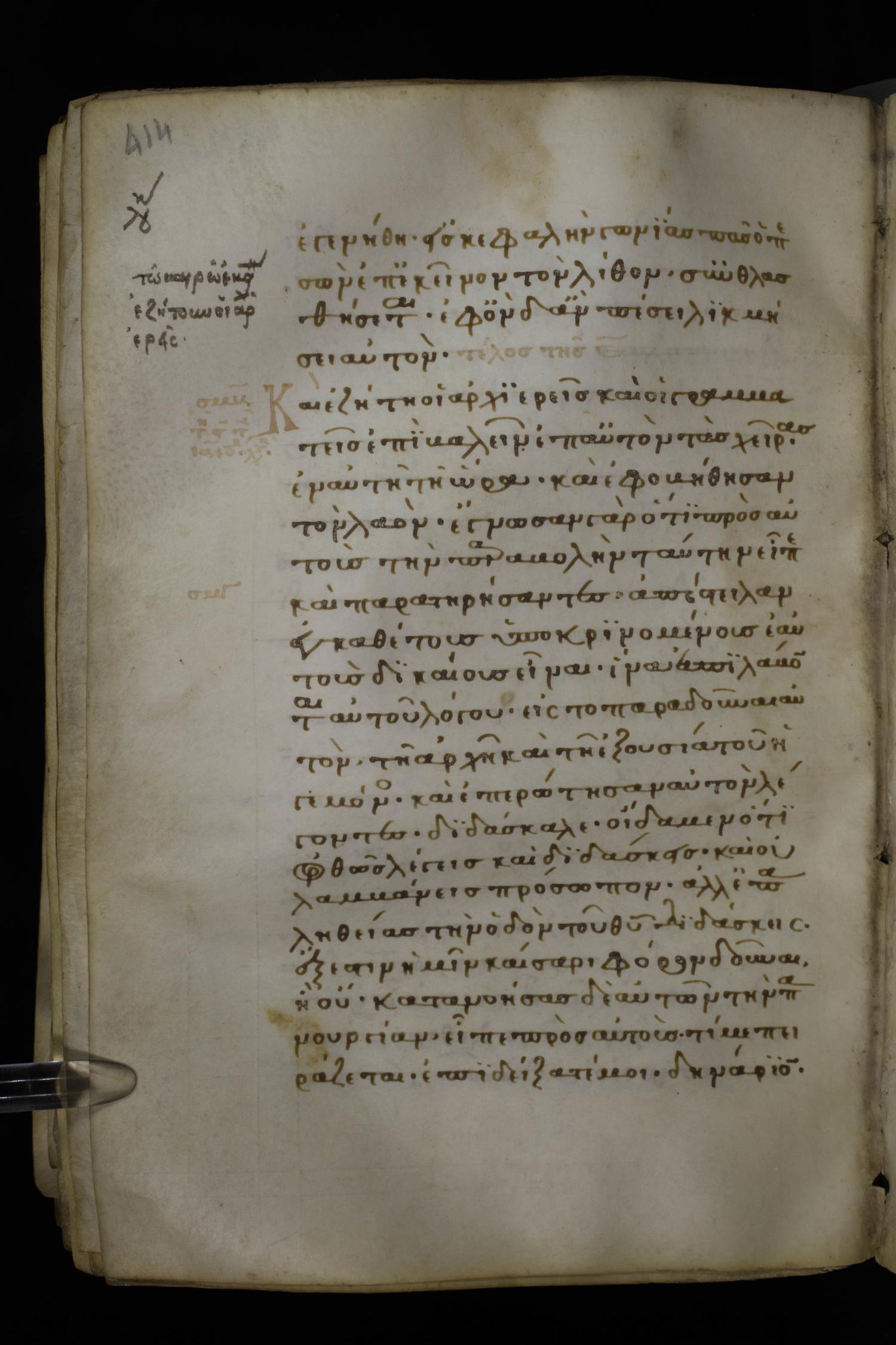 Thirteenth century minuscule of the Gospels on parchment; 298 leaves, 1 column, 22-24 lines per column. Images were taken at the National Library of Greece in Athens.